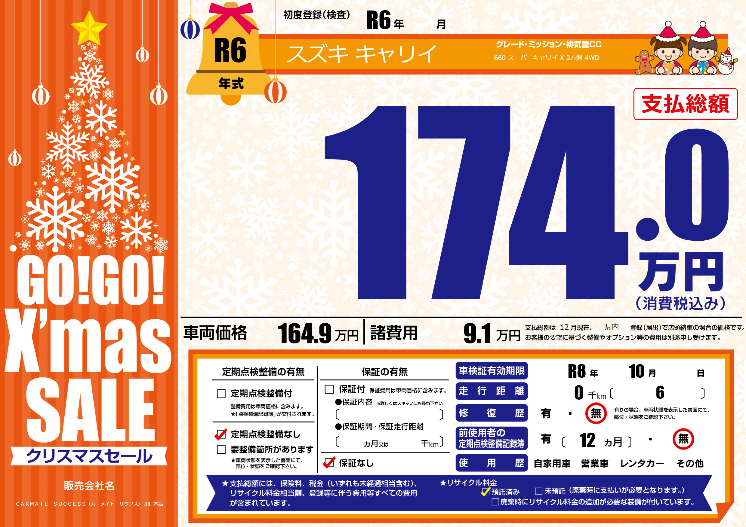 | 走行キロ | - | 初年度登録 | R6年---月 |