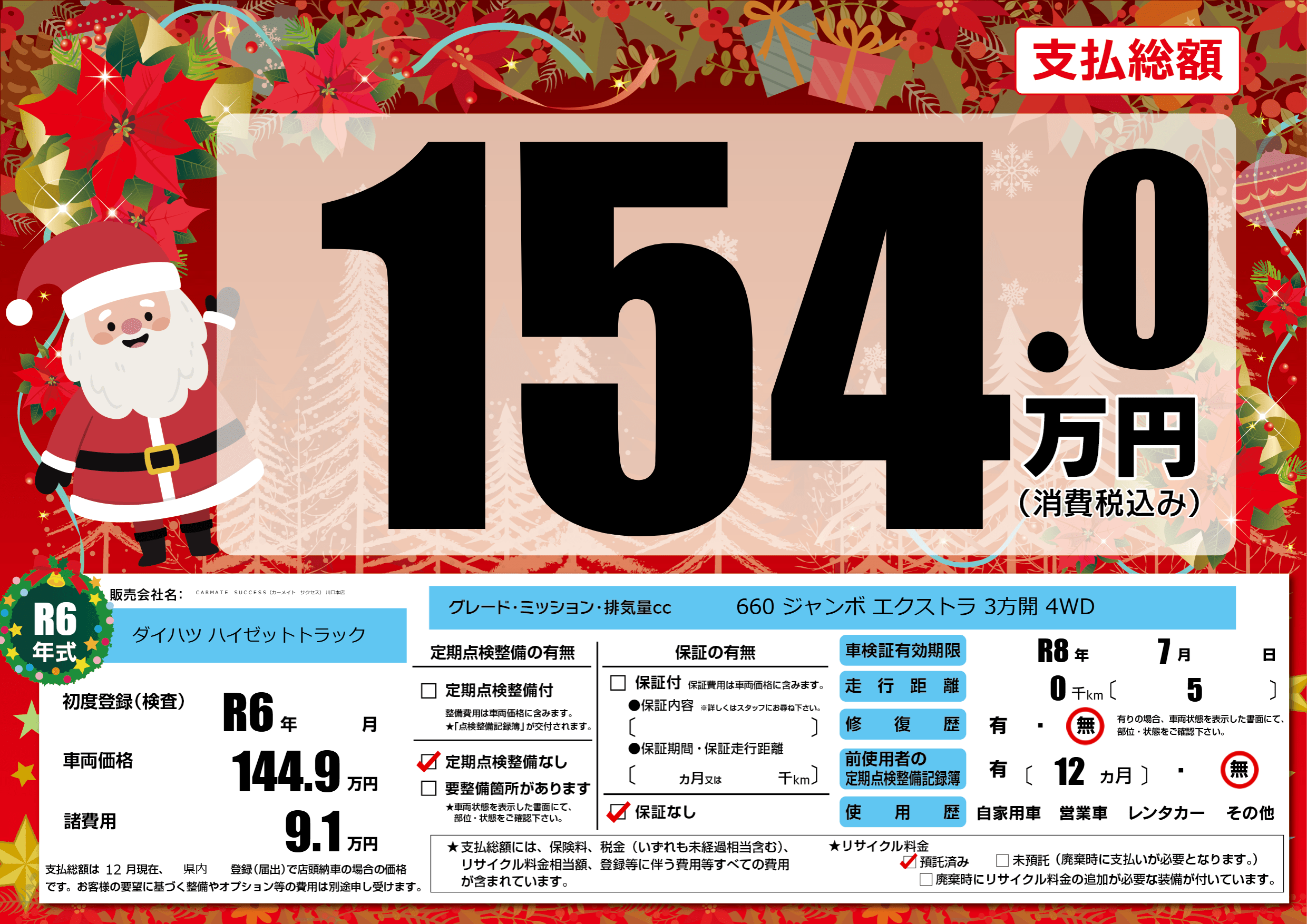 | 走行キロ | - | 初年度登録 | R6年---月 |