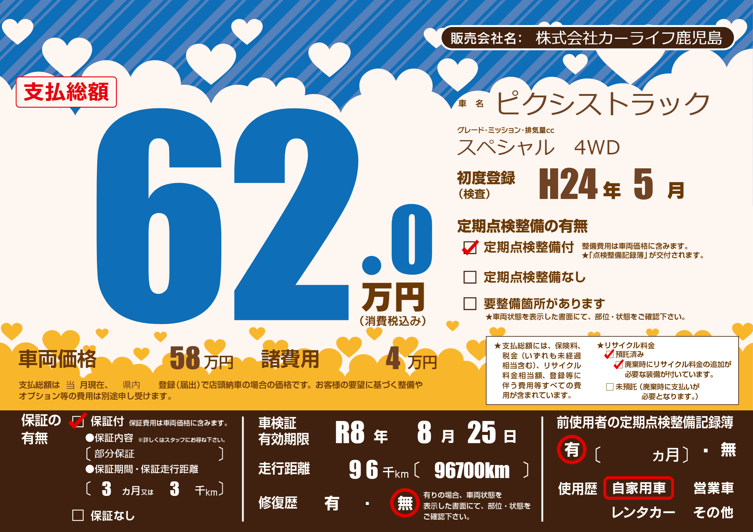 保証付き 保証内容(部分保証) 3ヶ月または(3)千kmまで |