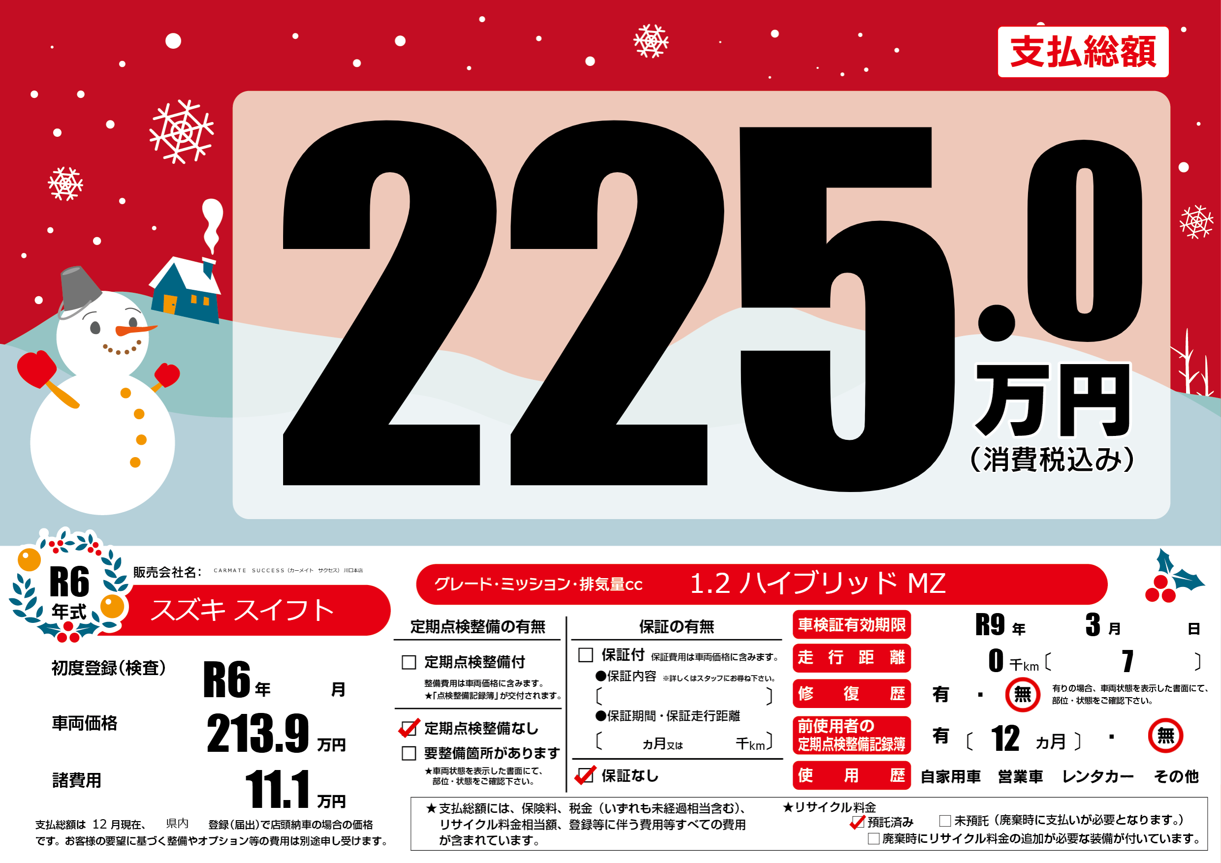 | 走行キロ | - | 初年度登録 | R6年---月 |