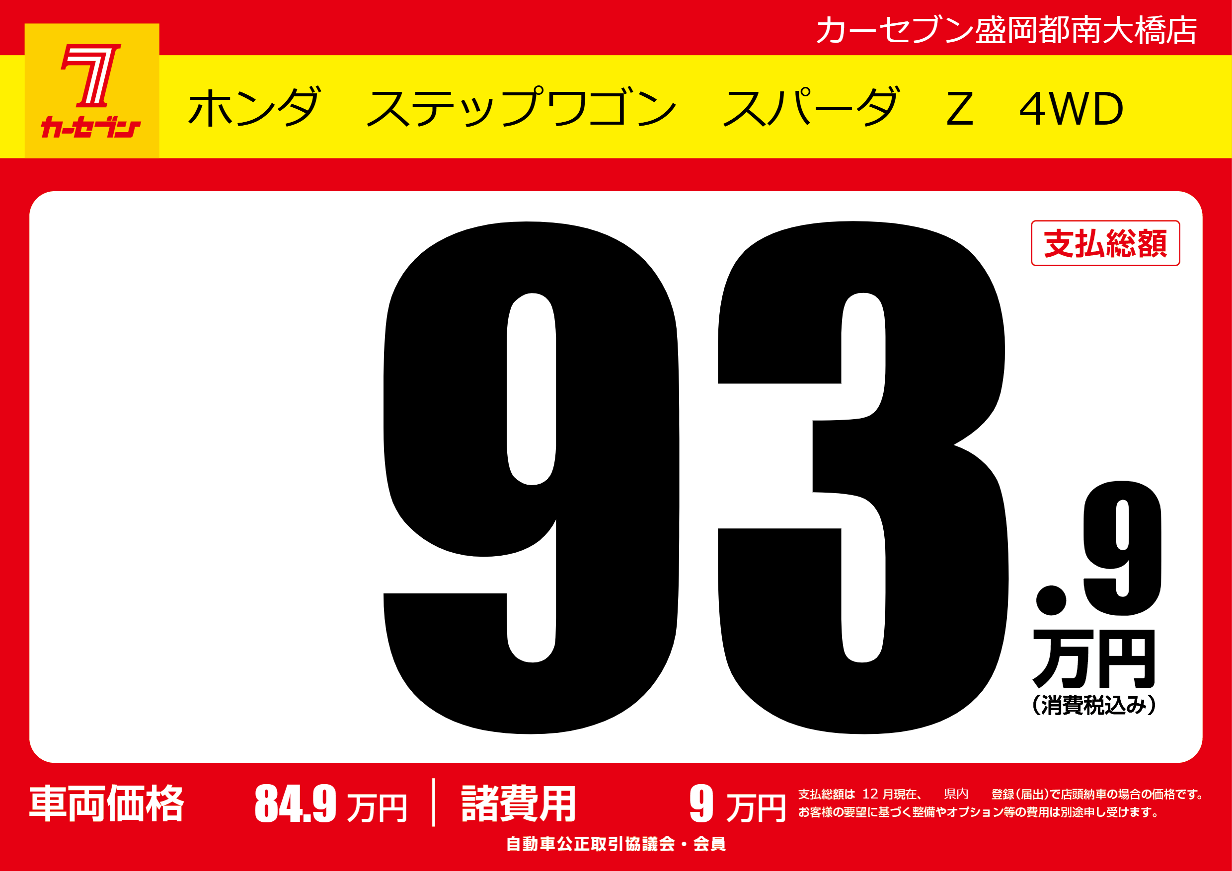 | 車名 | ホンダ ステップワゴン スパーダ Z 4WD | グレード ミッション 排気量 |