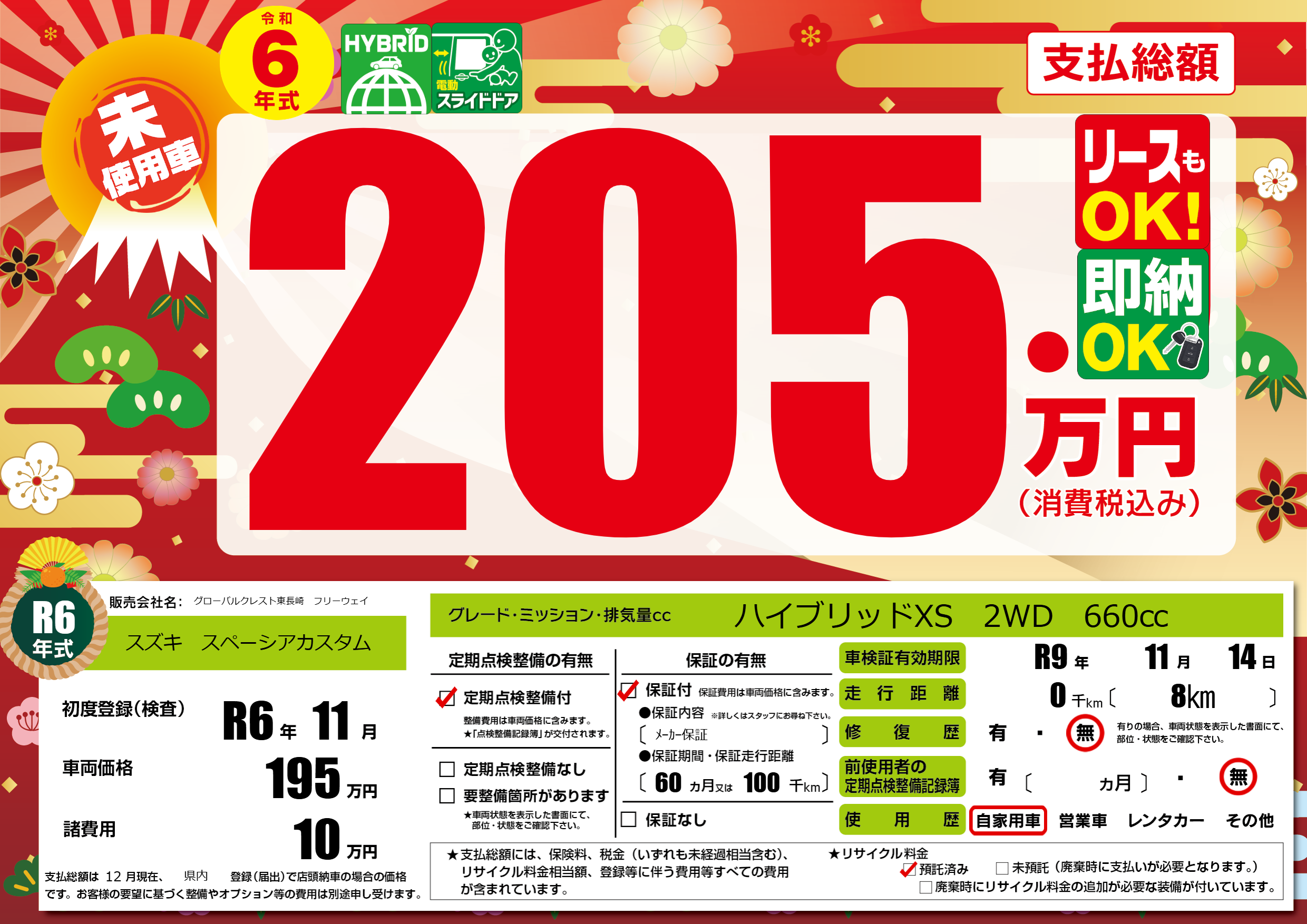 | 走行キロ | - | 初年度登録 | R6年11月 |
