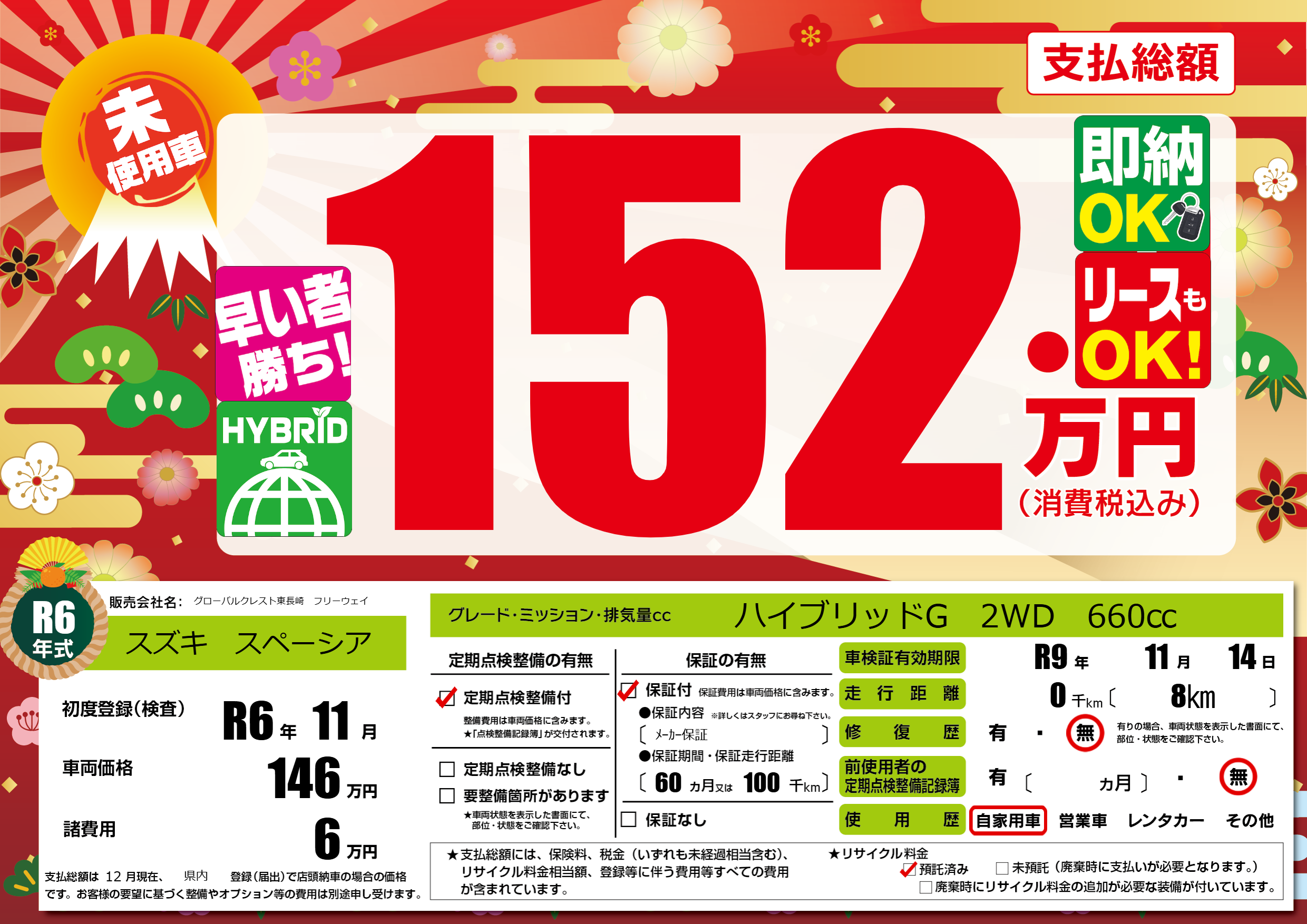 | 走行キロ | - | 初年度登録 | R6年11月 |