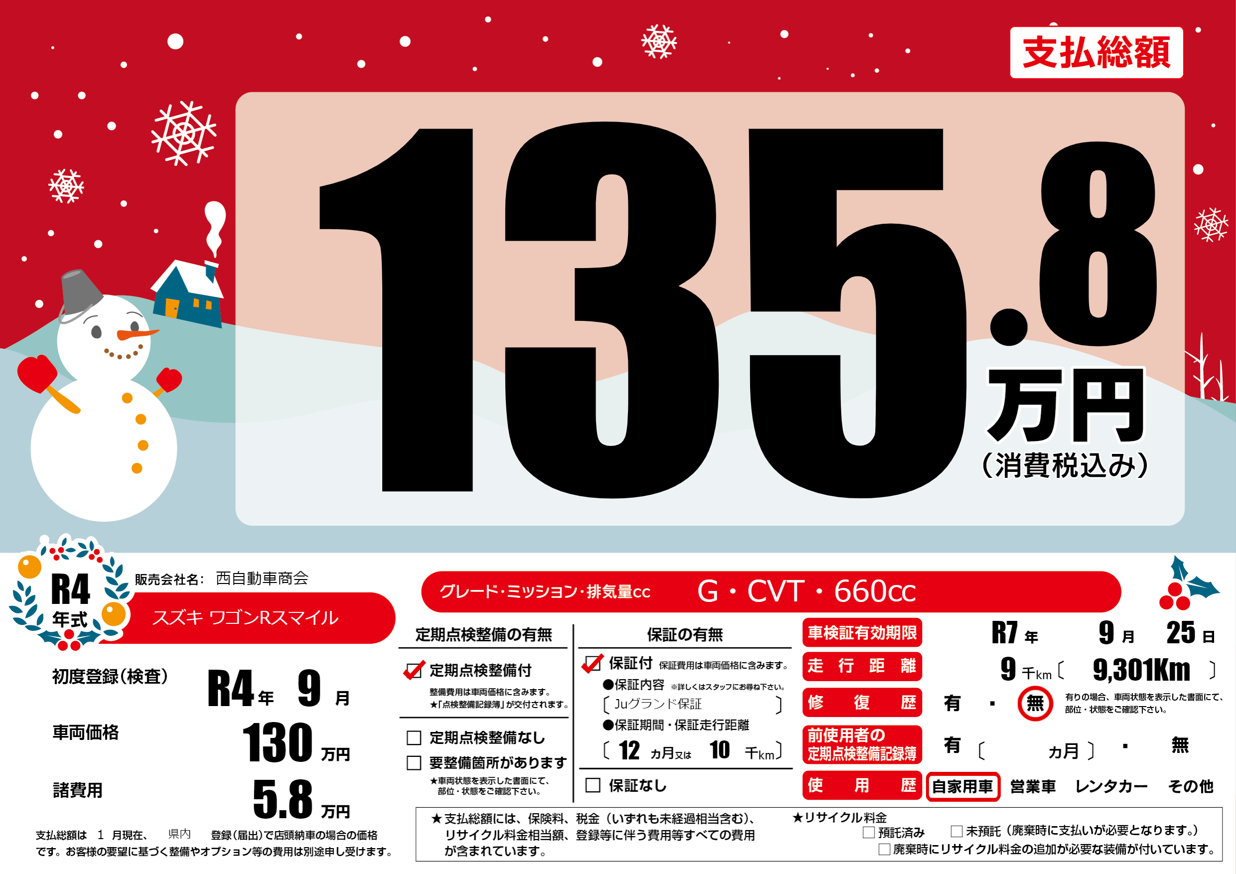 | 走行キロ | 0.9万km | 初年度登録 | R4年9月 |