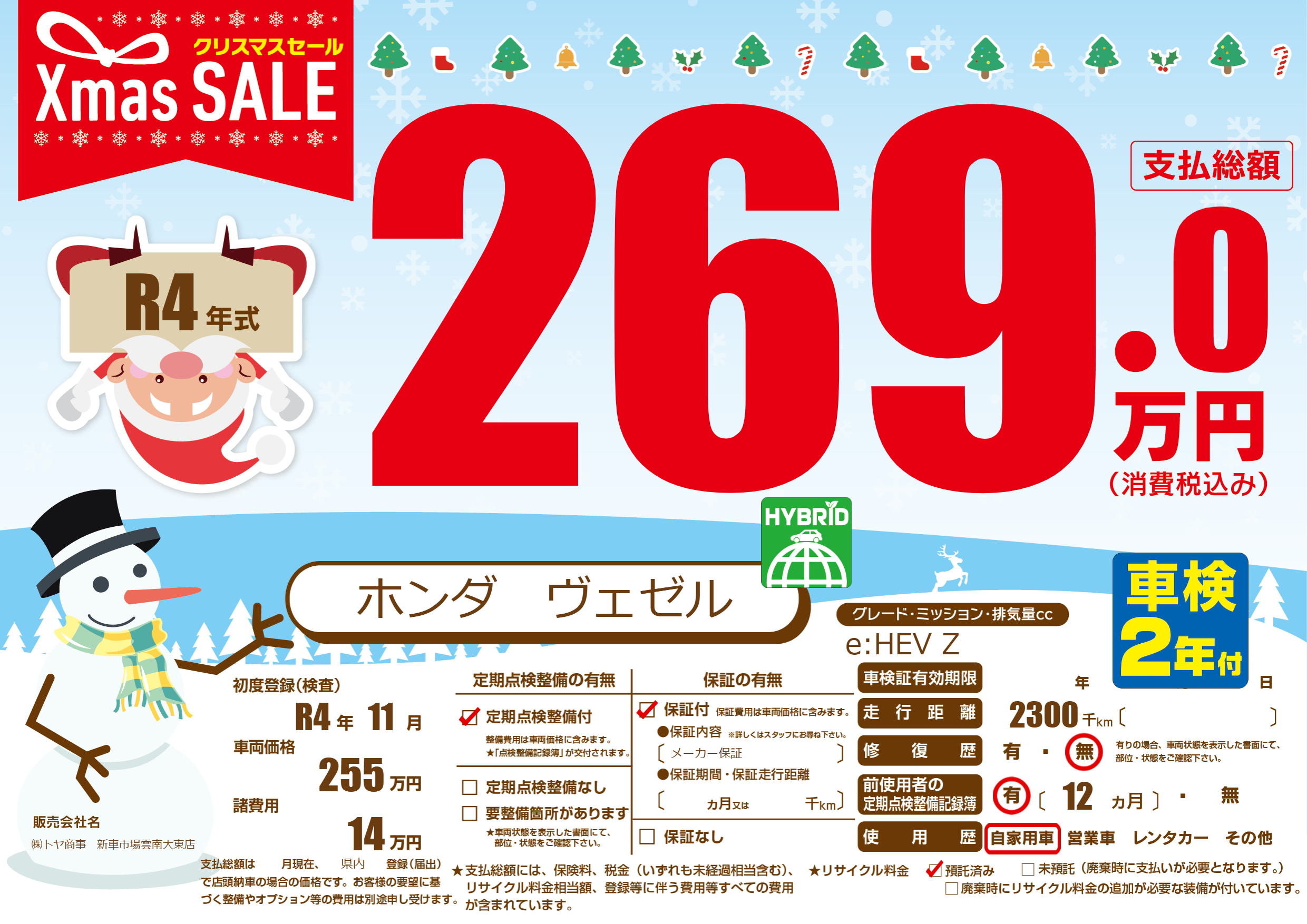 | 定期点検整備 | 定期点検整備あり | ||