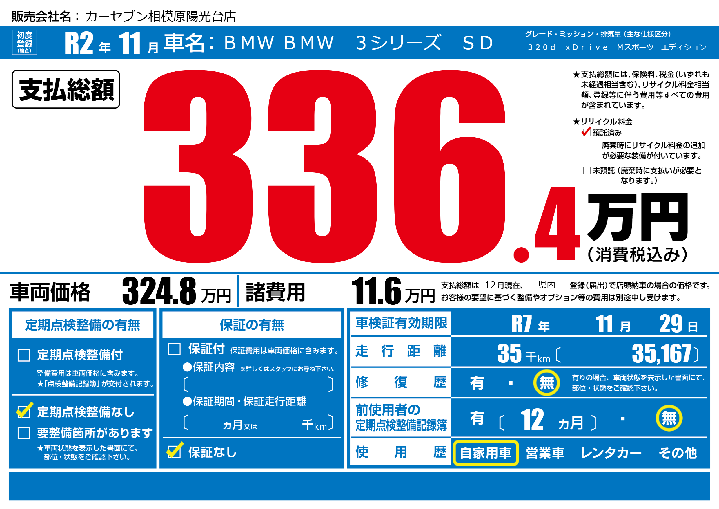 | 車検制限 | R7年 11月 29日 | ||