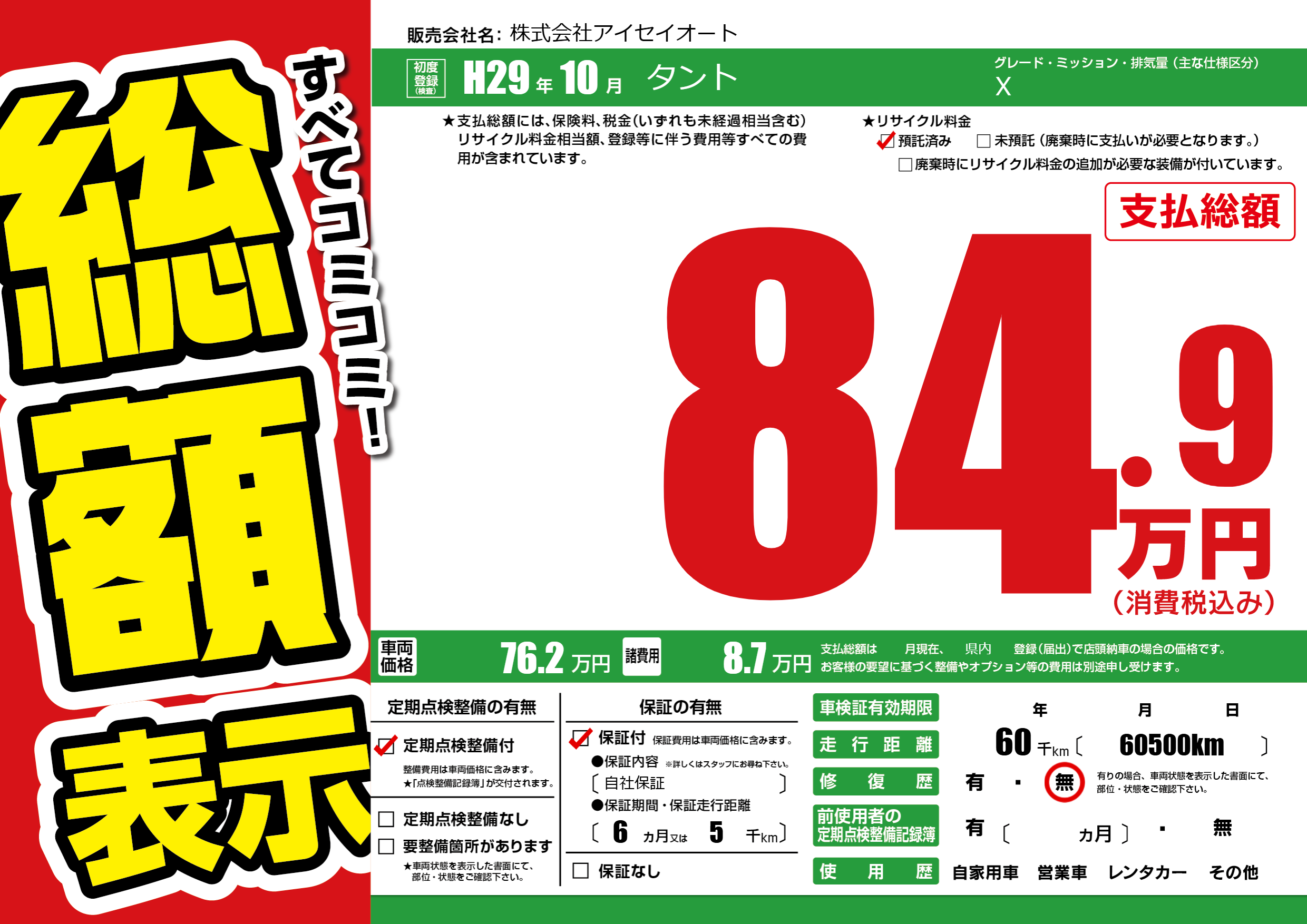 | 定期点検整備 | 定期点検整備あり | ||