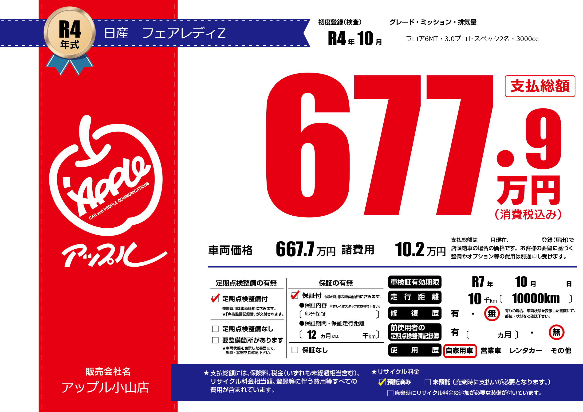 | 走行キロ | 1万km | 初年度登録 | R4年10月 |