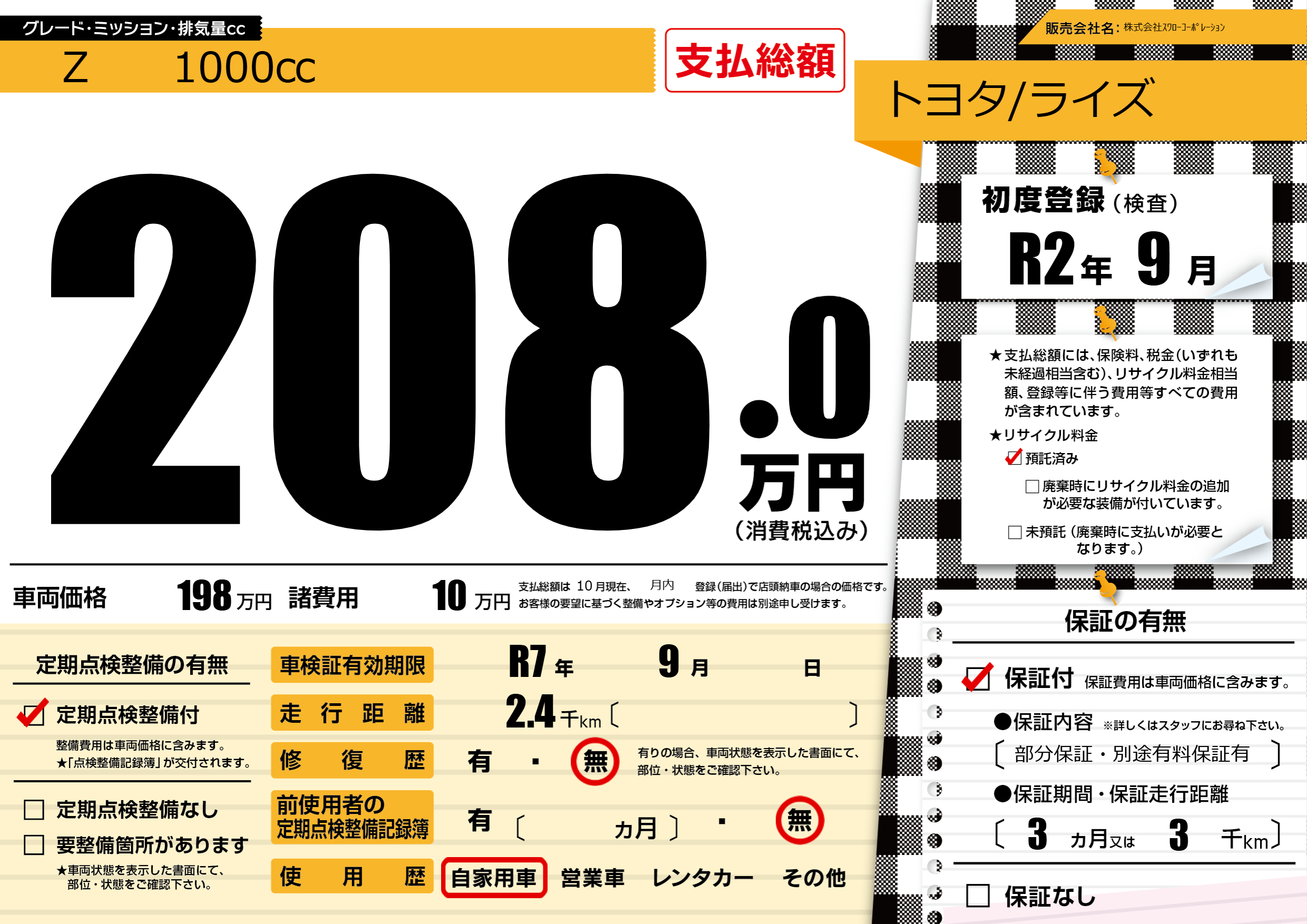保証内容(部分保証・別途有料保証有) 3ヶ月または3千km
