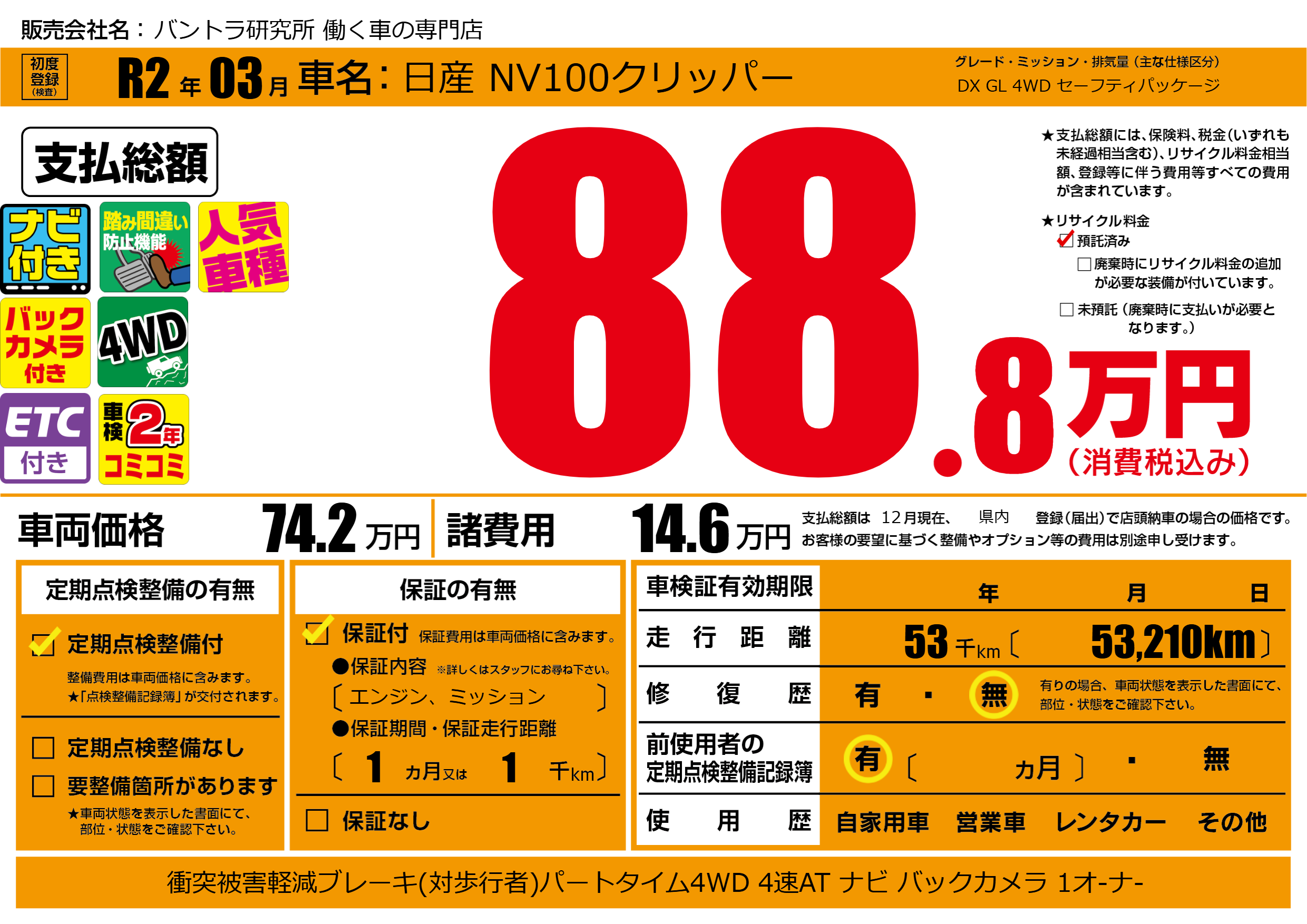 保証付き 保証内容(エンジン、ミッション) 1ヶ月または1千km |
