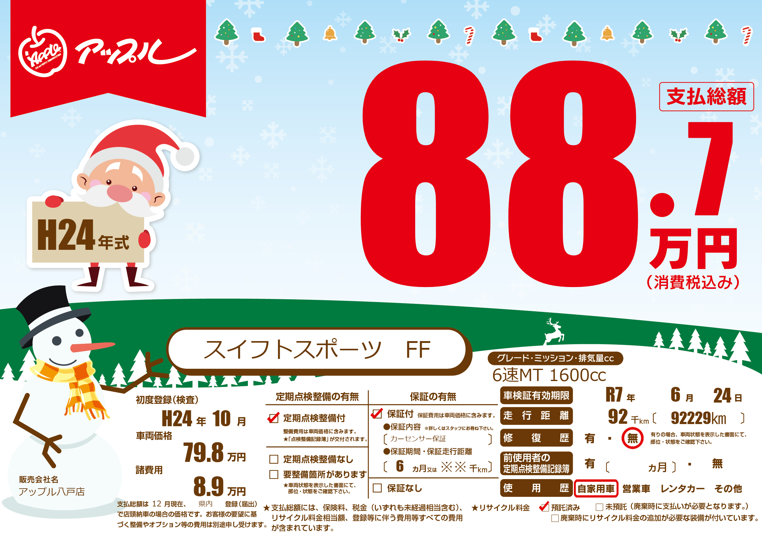 なし | 車検制限 | R7年6月24月 |