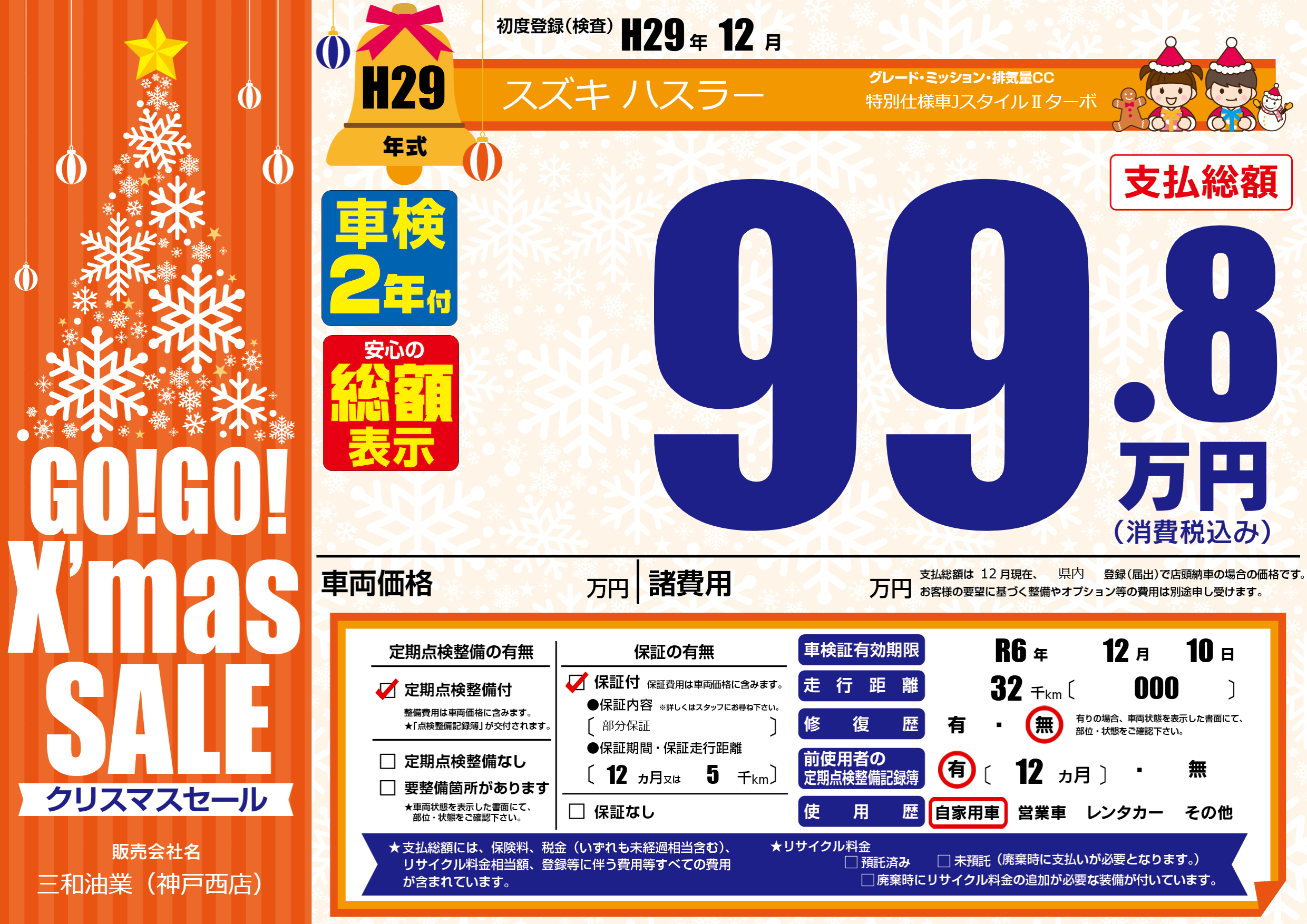 | 車名 | スズキ ハスラー | グレード ミッション 排気量 |