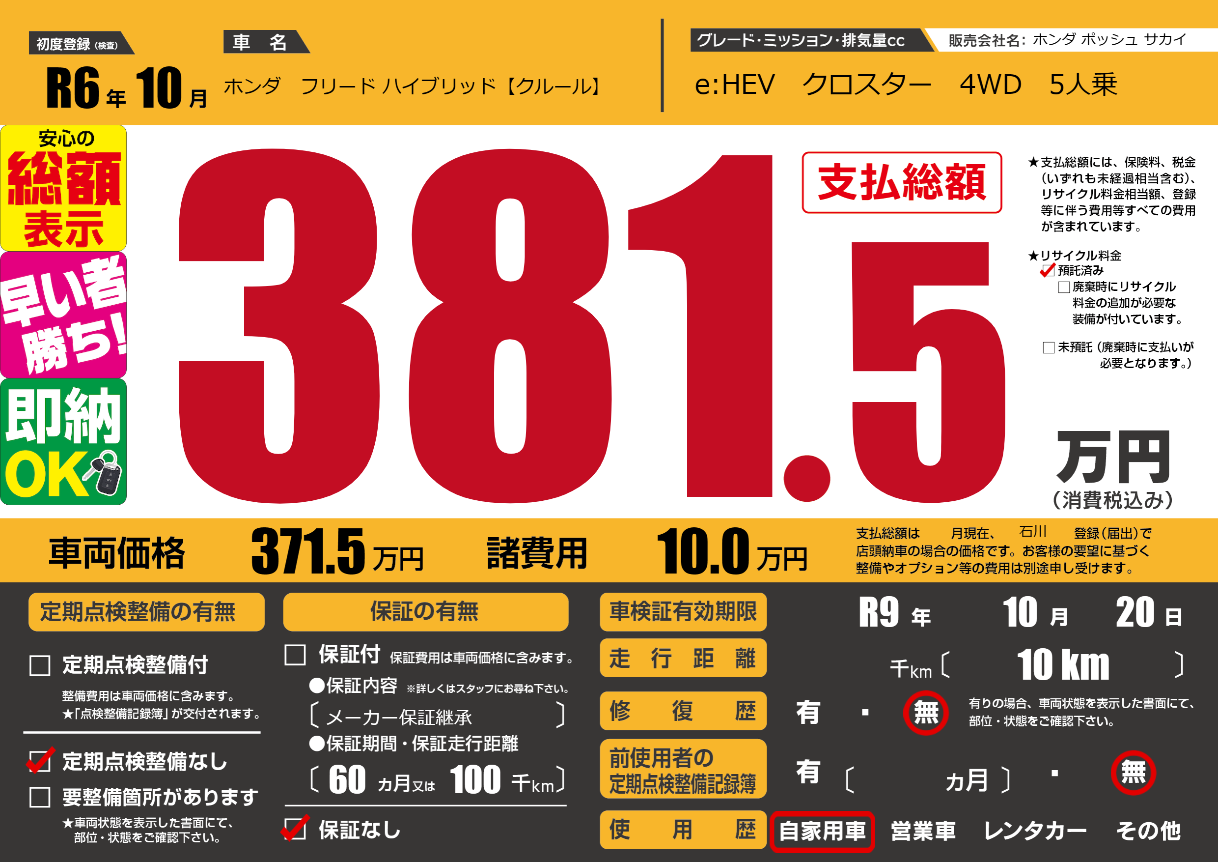 | 走行キロ | - | 初年度登録 | R6年10月 |