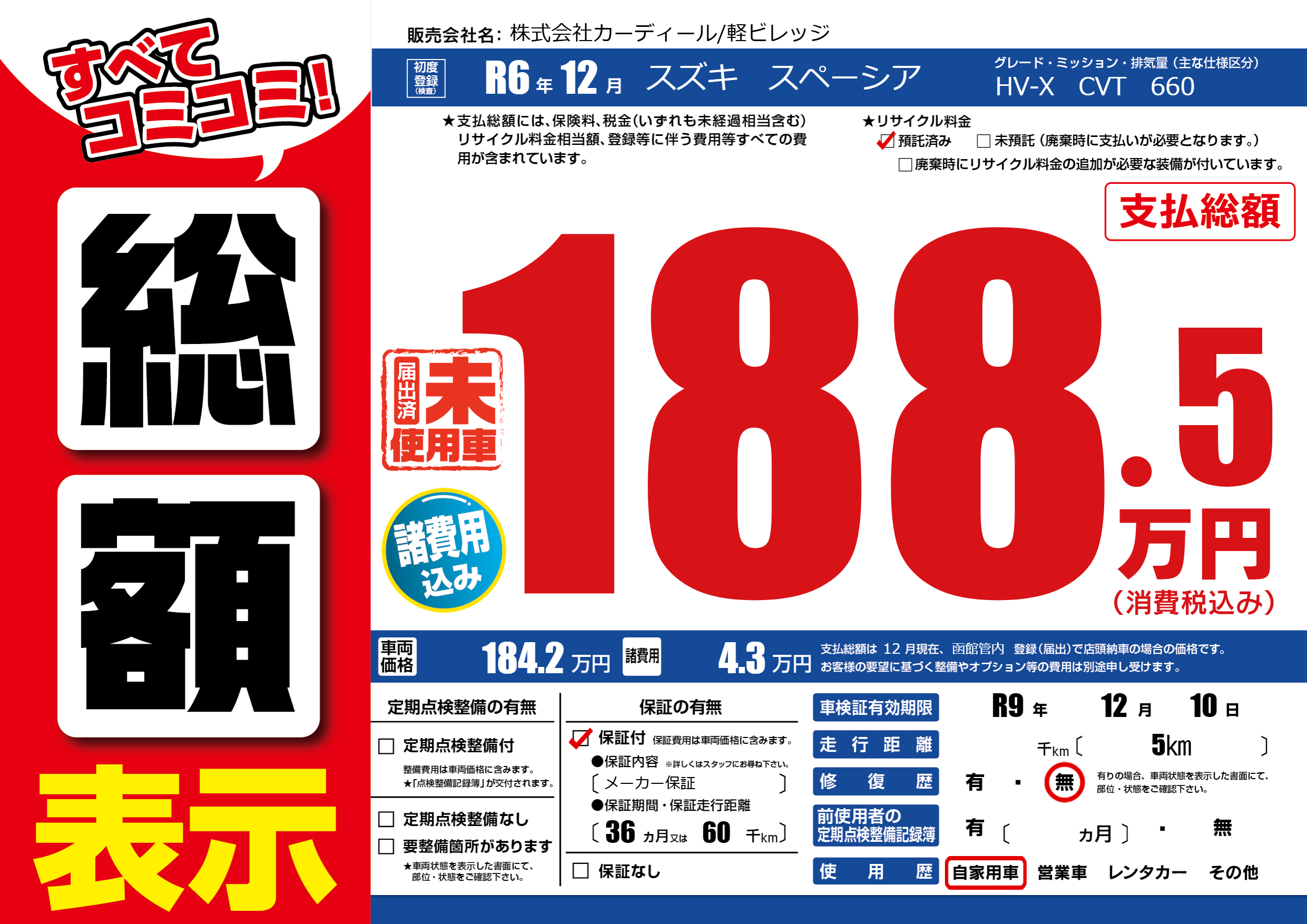 | 走行キロ | - | 初年度登録 | R6年12月 |