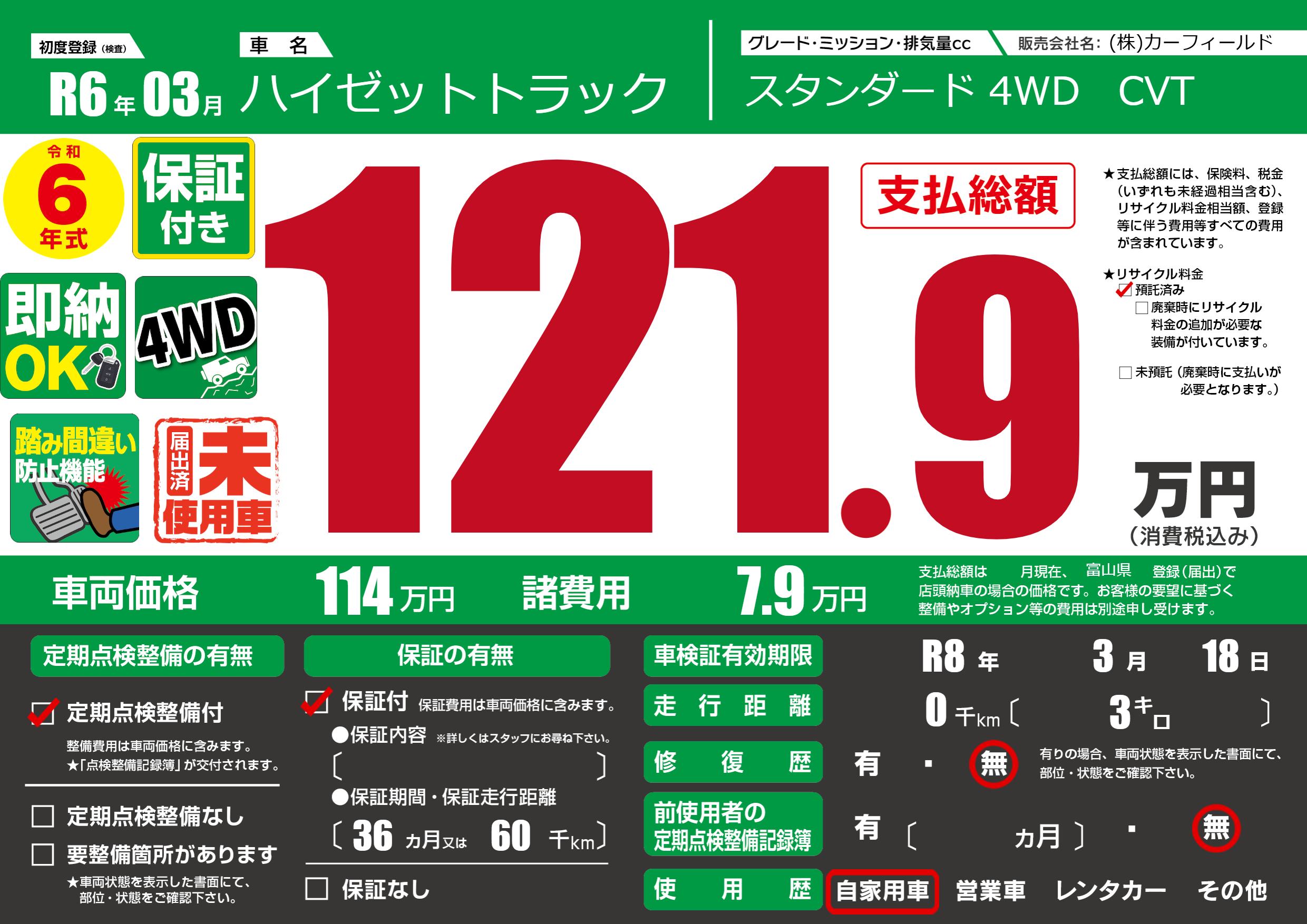 | 車検制限 | R8年 3月 18日 | ||