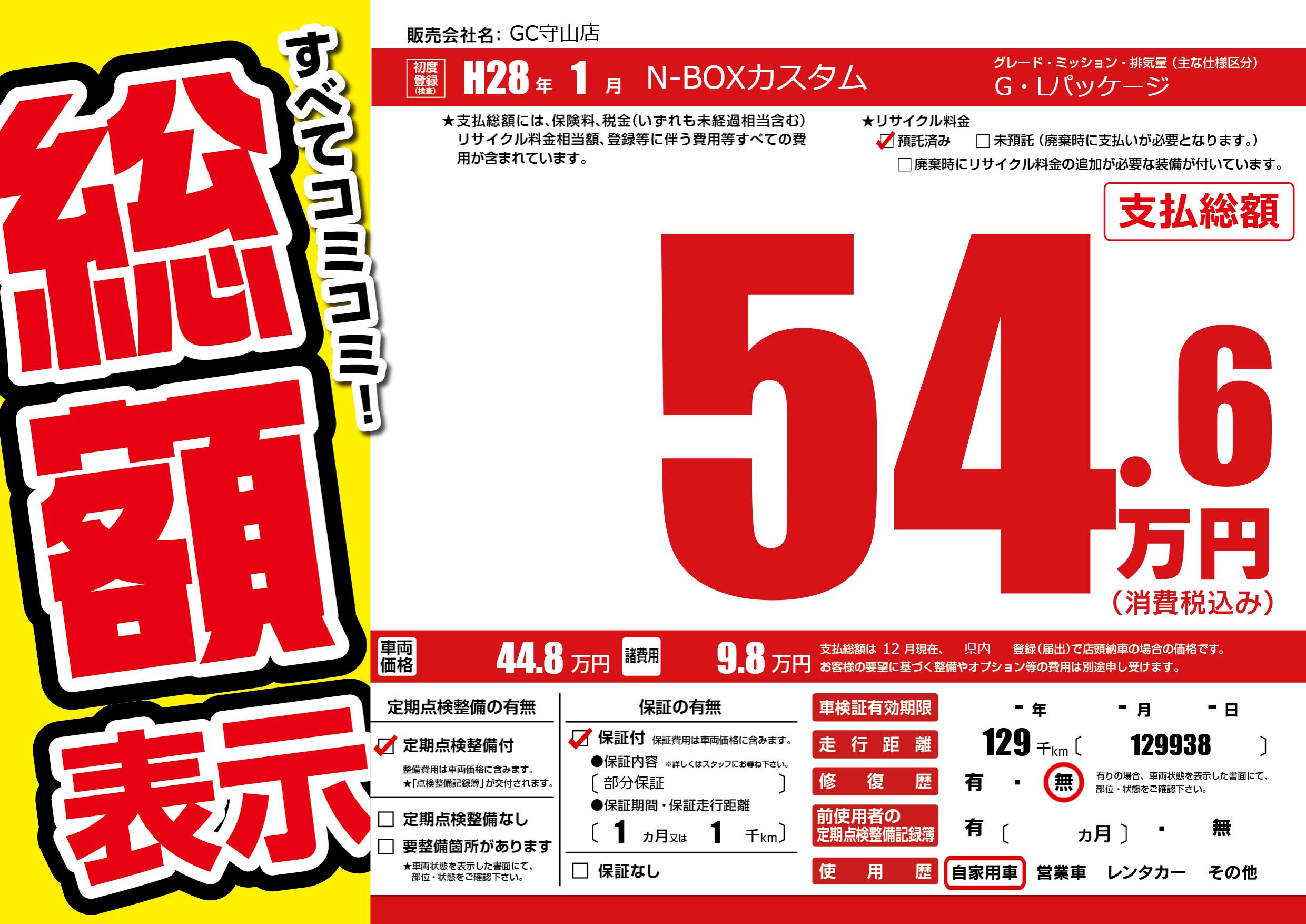 | 車名 | N-BOXカスタム | グレード ミッション 排気量 |