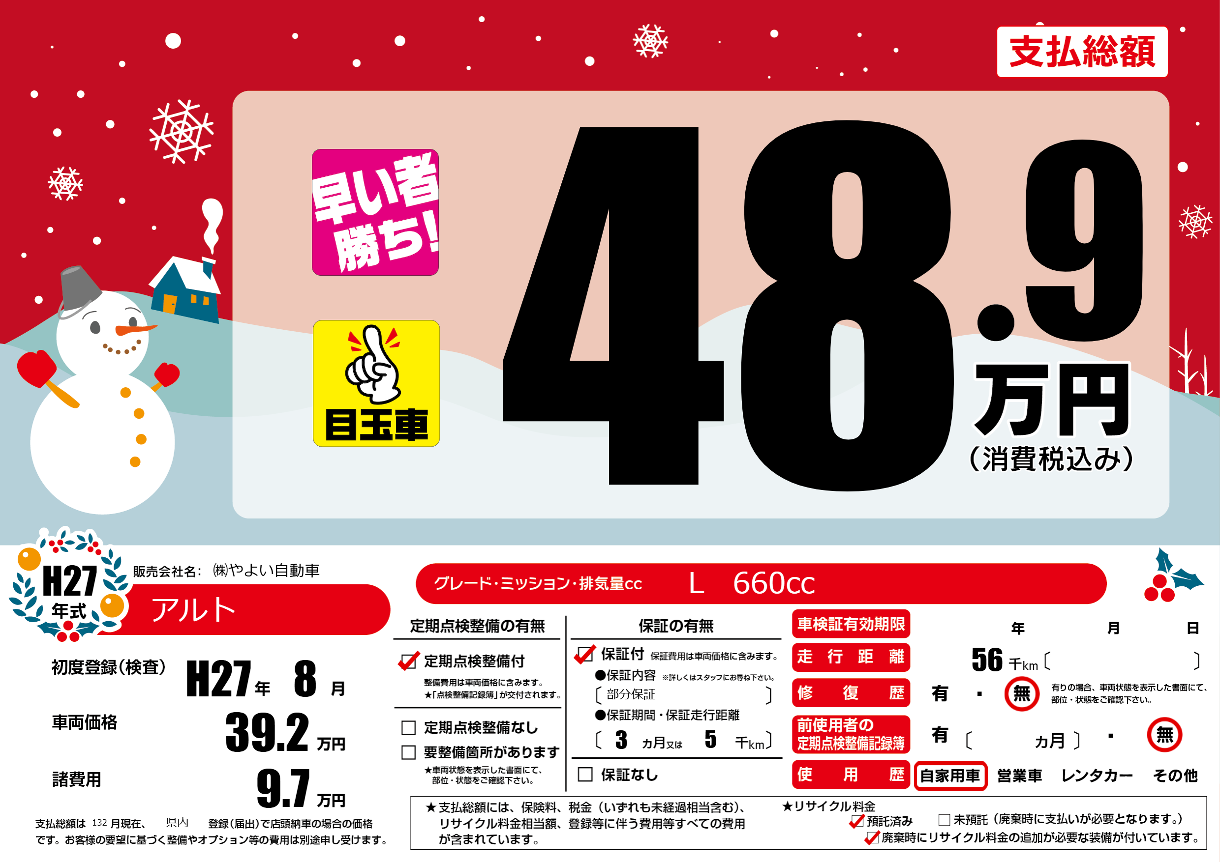 | 走行キロ | 5.6万km | 初年度登録 | H27年8月 |