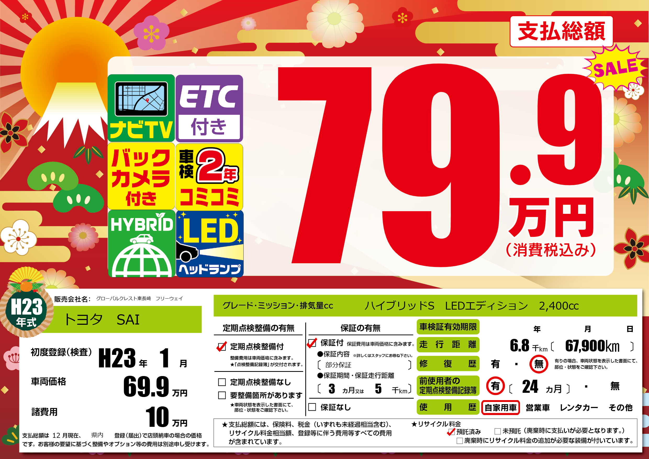 | 車名 | トヨタ SAI | グレード ミッション 排気量 |