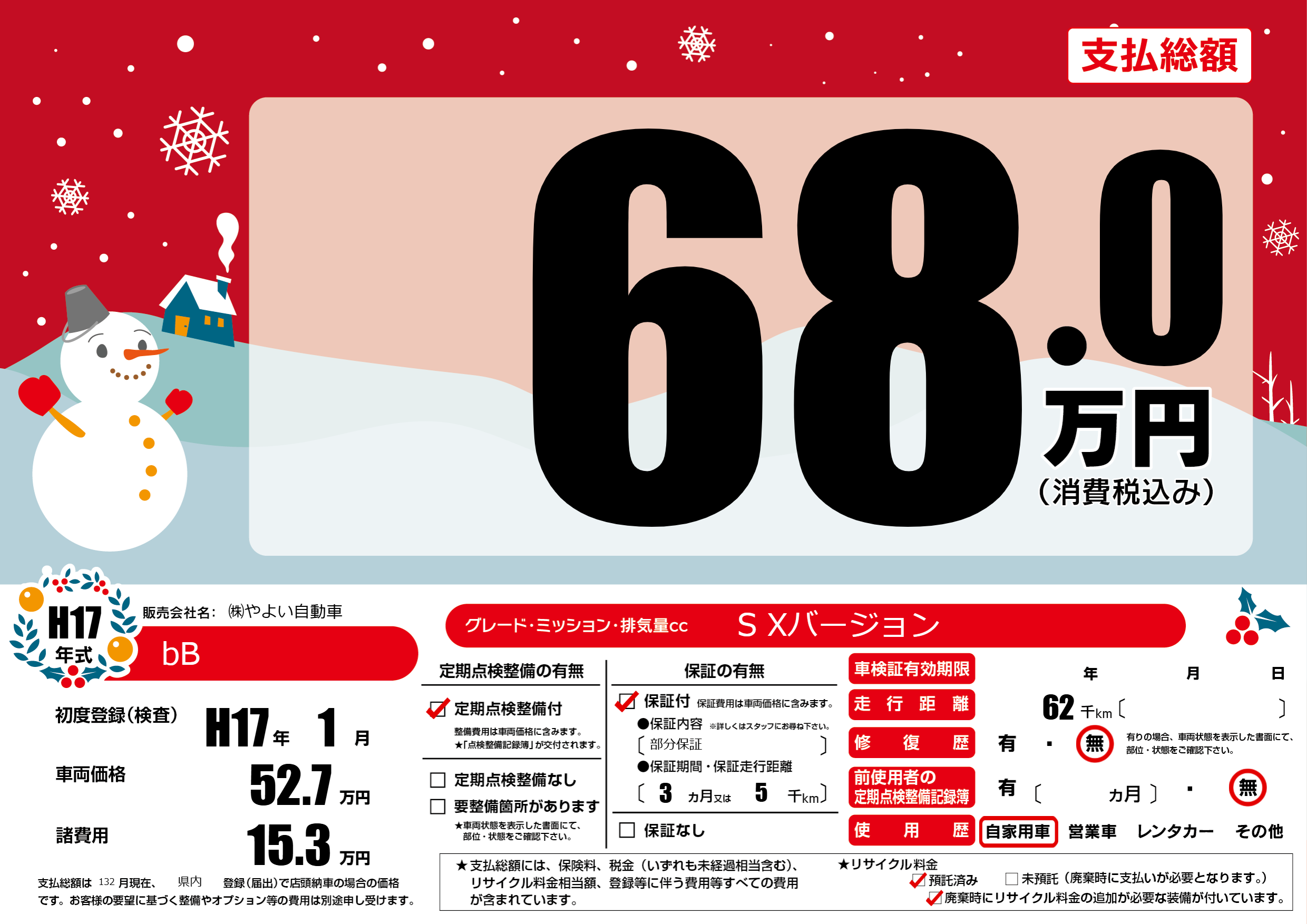 | 走行キロ | 6.2万km | 初年度登録 | H17年1月 |