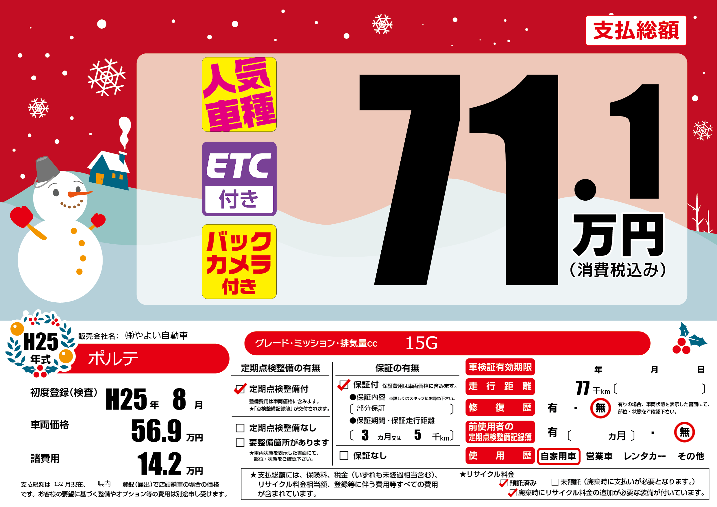 保証付き 保証内容(部分保証) 3ヶ月または(5)千kmまで |
