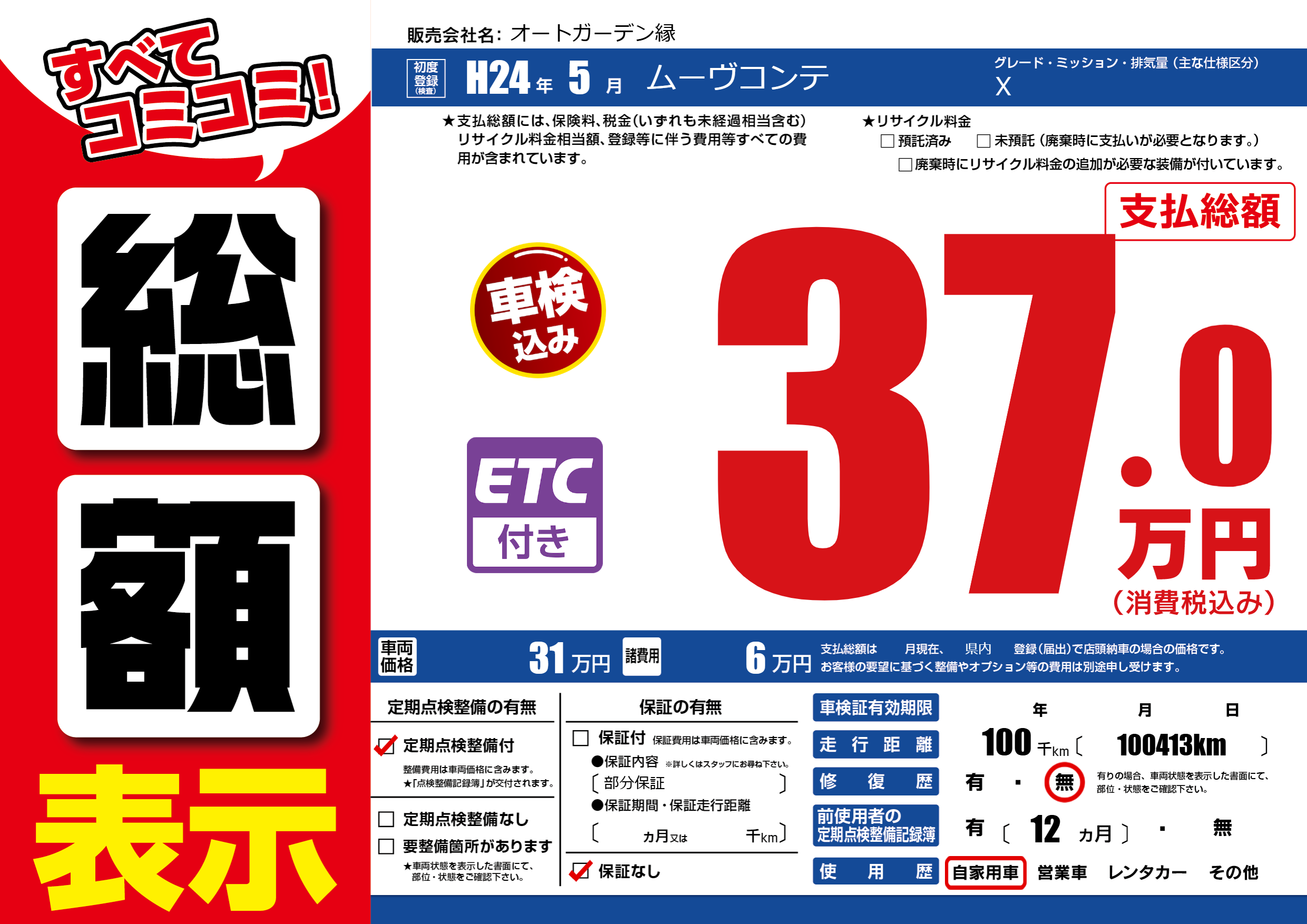 | 車名 | ムーヴコンテ | グレード ミッション 排気量 |
