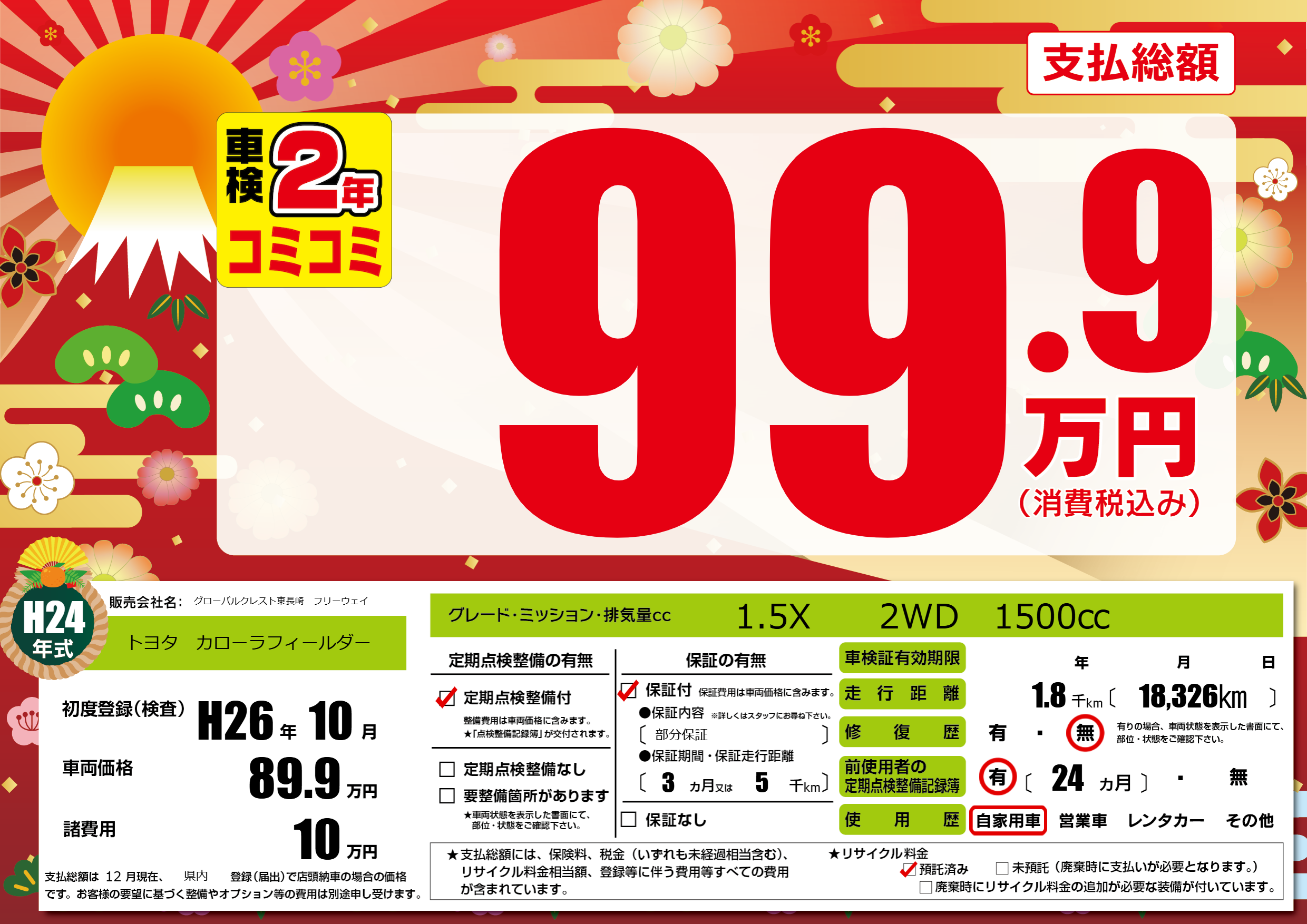 | 車名 | トヨタ カローラフィールダー | グレード ミッション 排気量 |