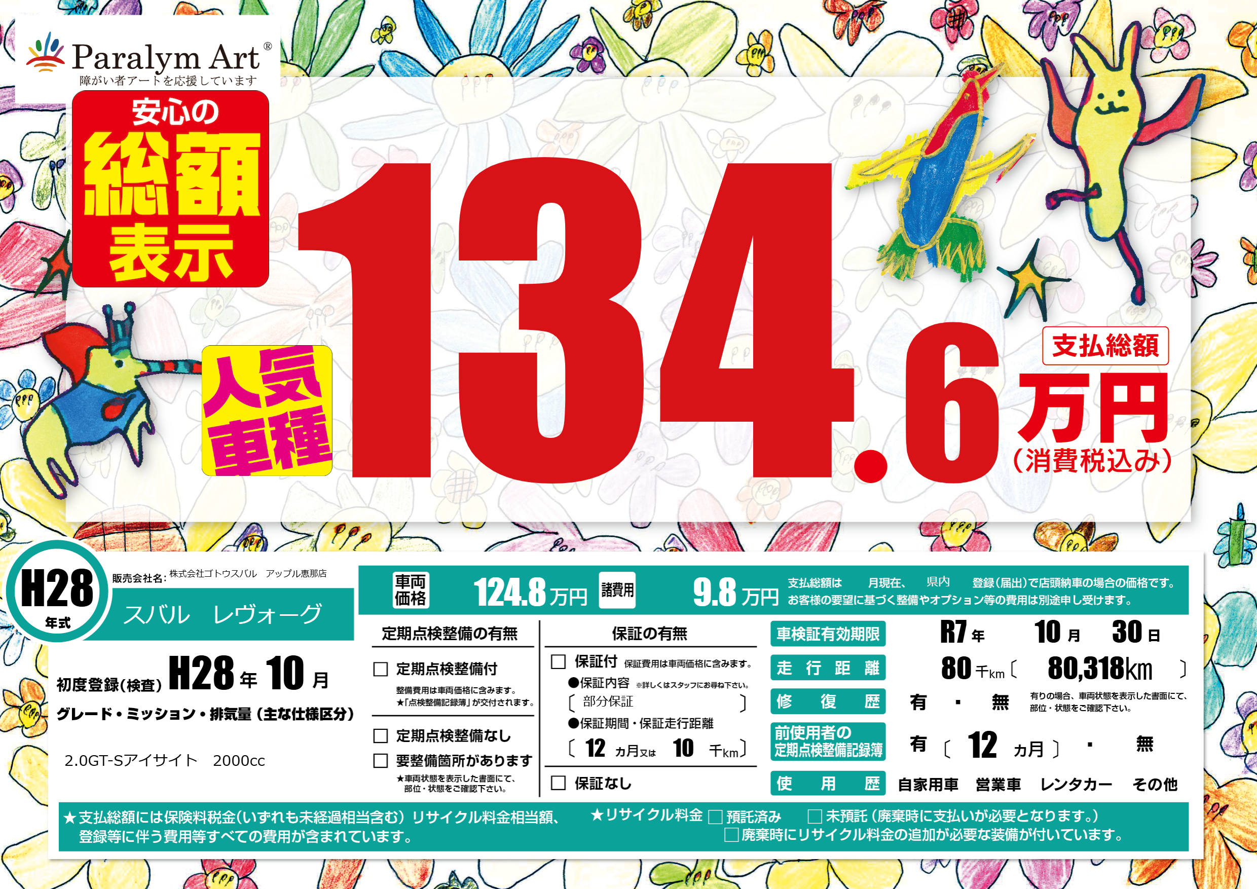 | 車名 | スバル レヴォーグ | グレード ミッション 排気量 |