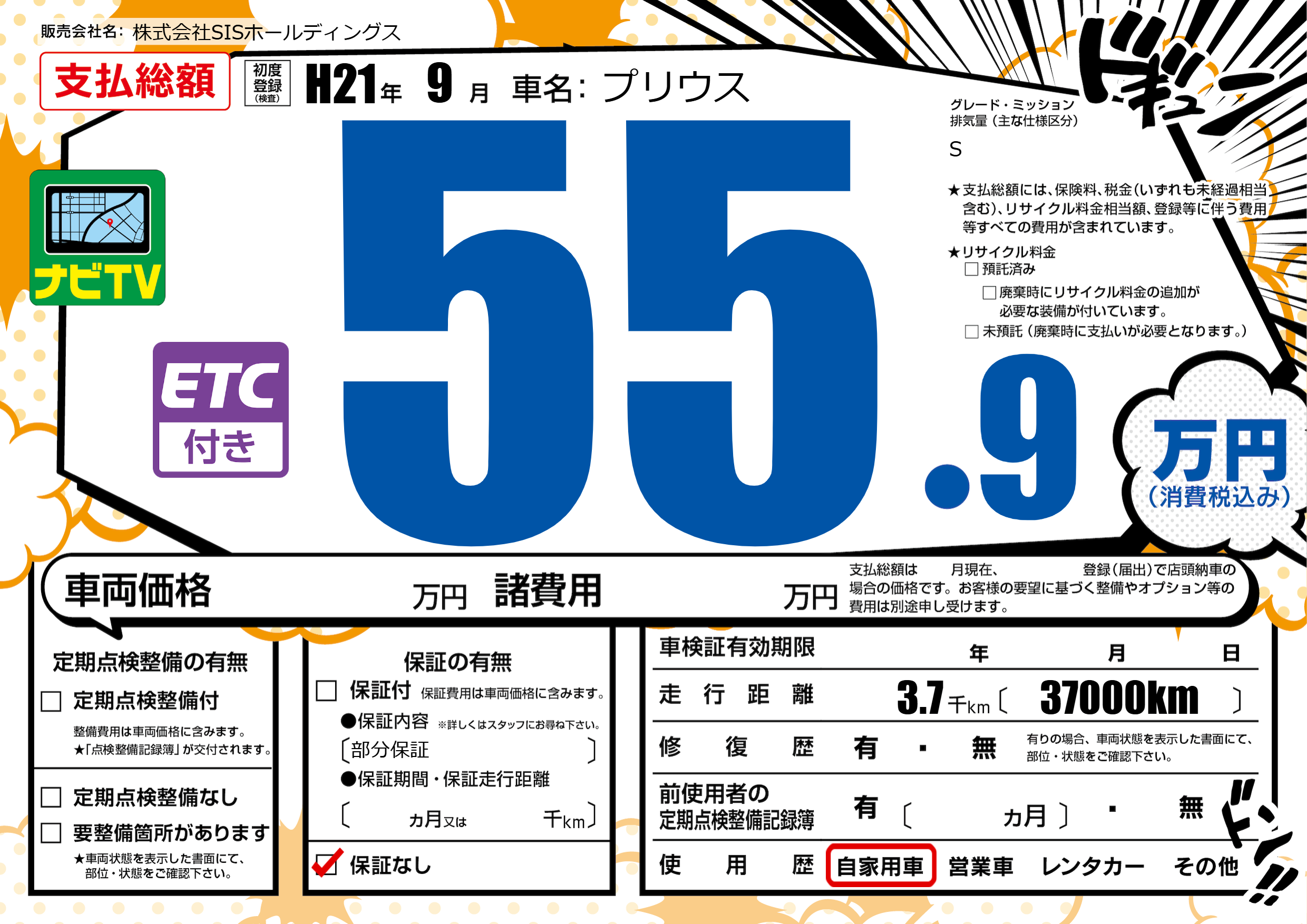 | 車名 | プリウス | グレード ミッション 排気量 |