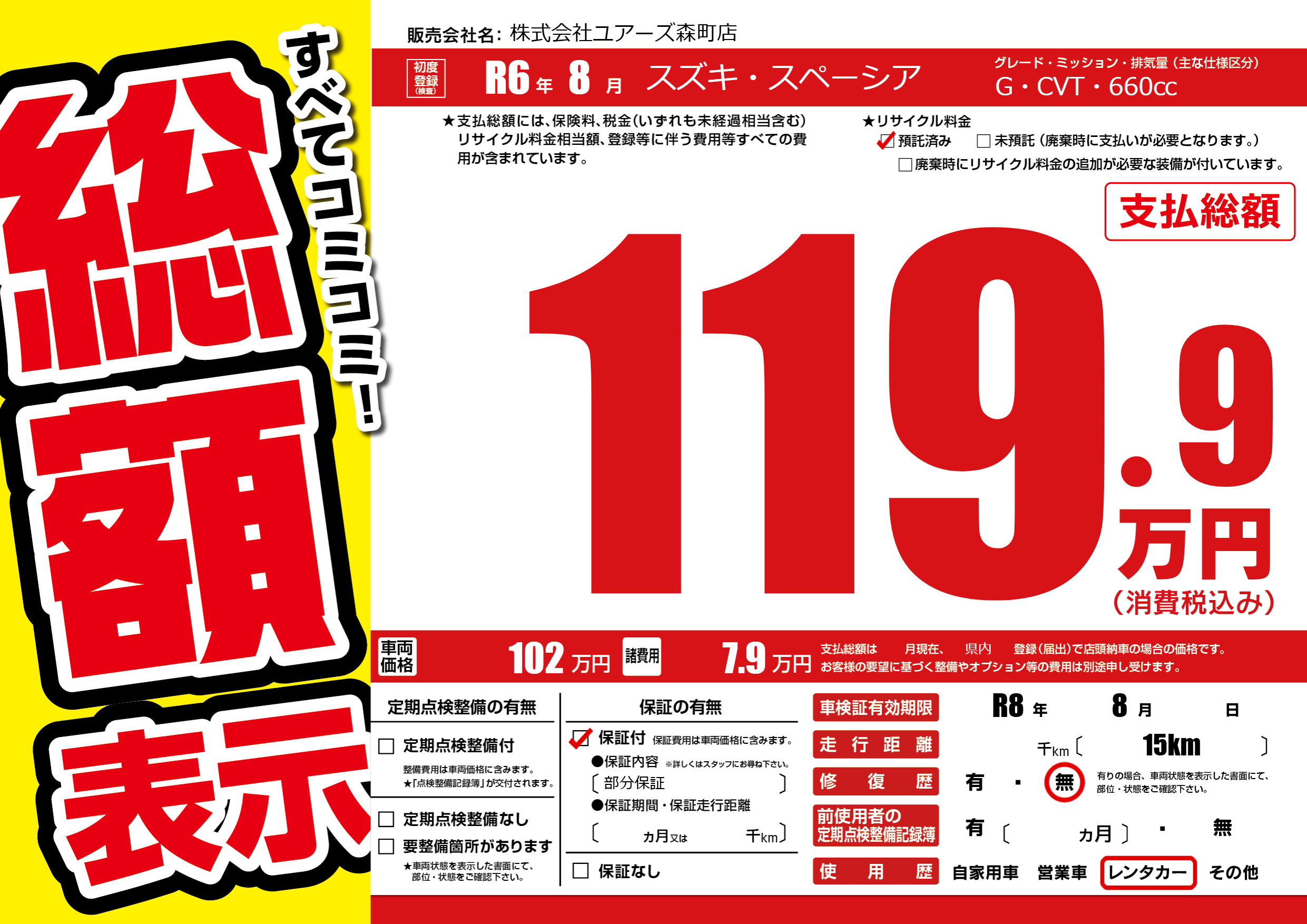 なし | 車検制限 | R8年8月---月 |