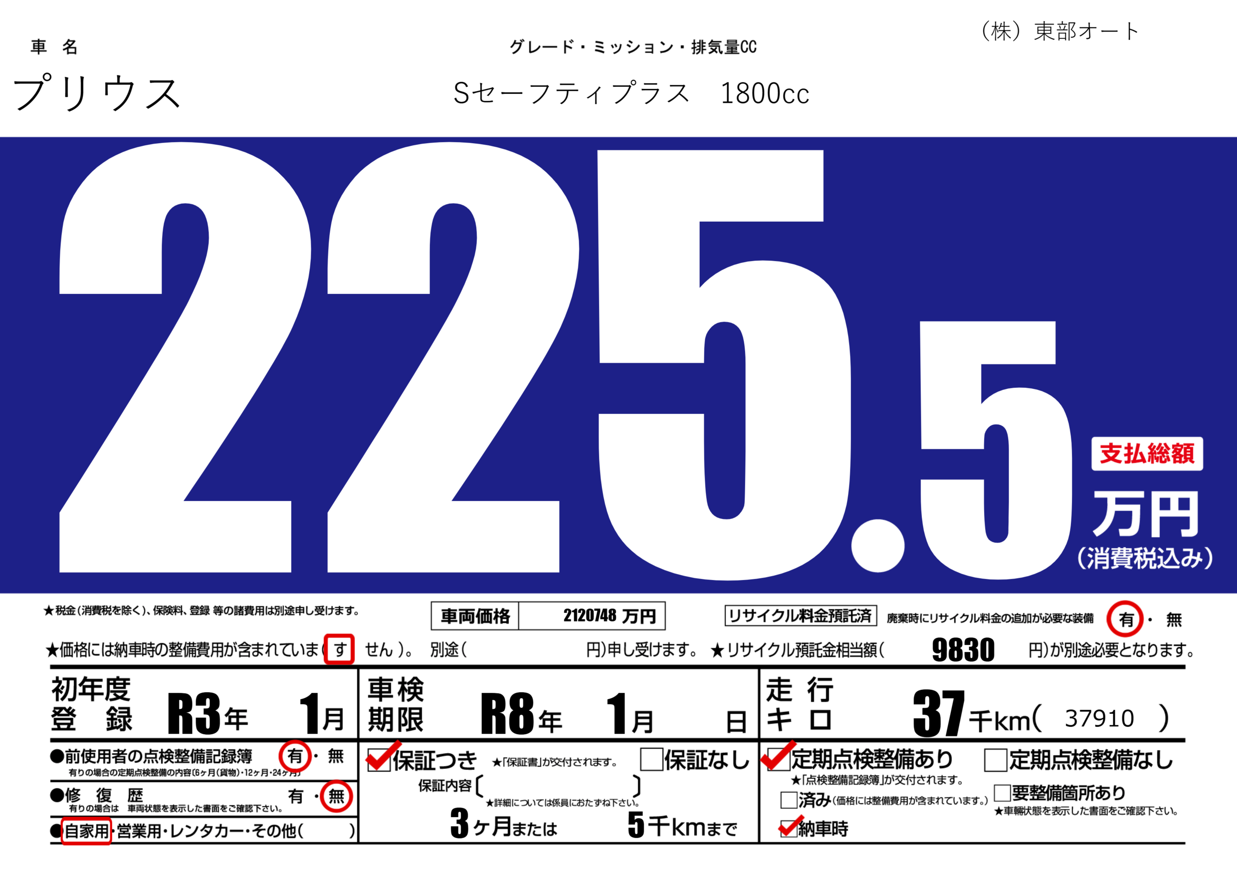 | 車名 | プリウス | グレード ミッション 排気量 |