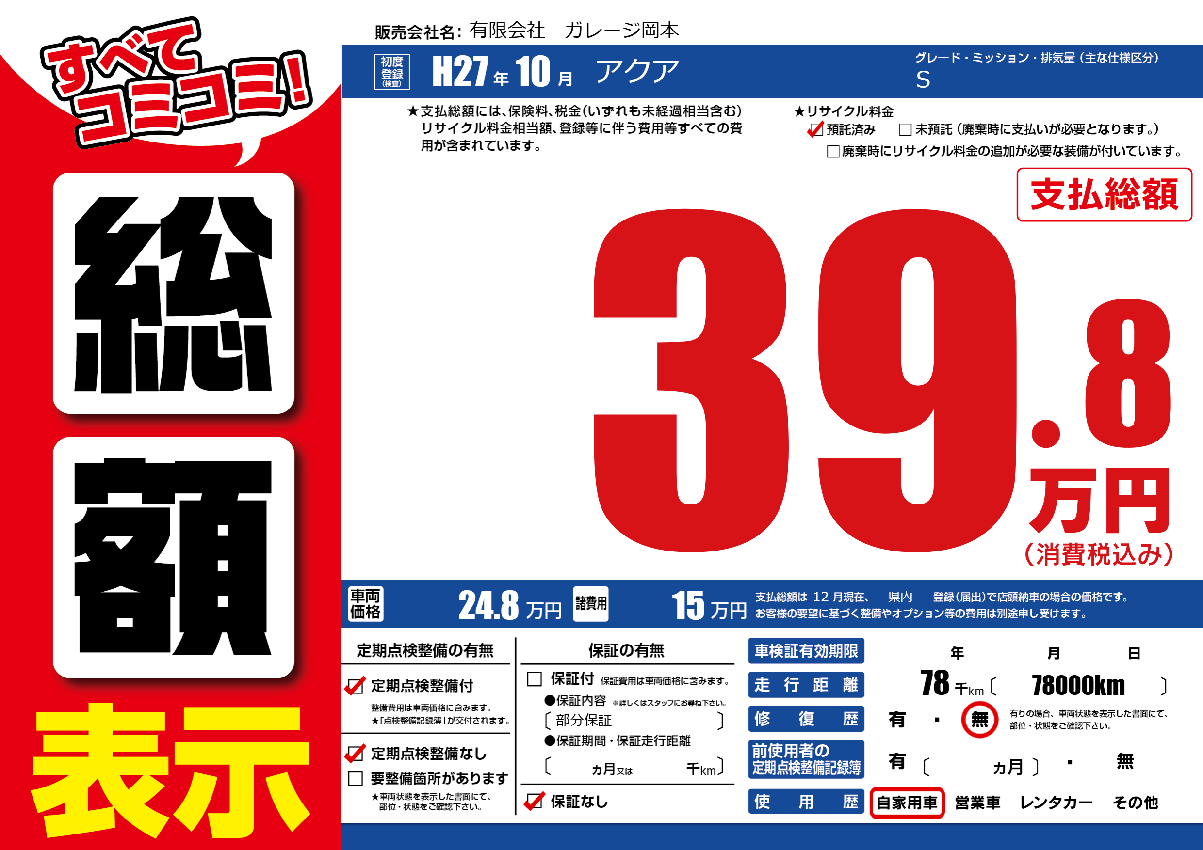 | 定期点検整備 | 定期点検整備あり 定期点検整備なし | ||