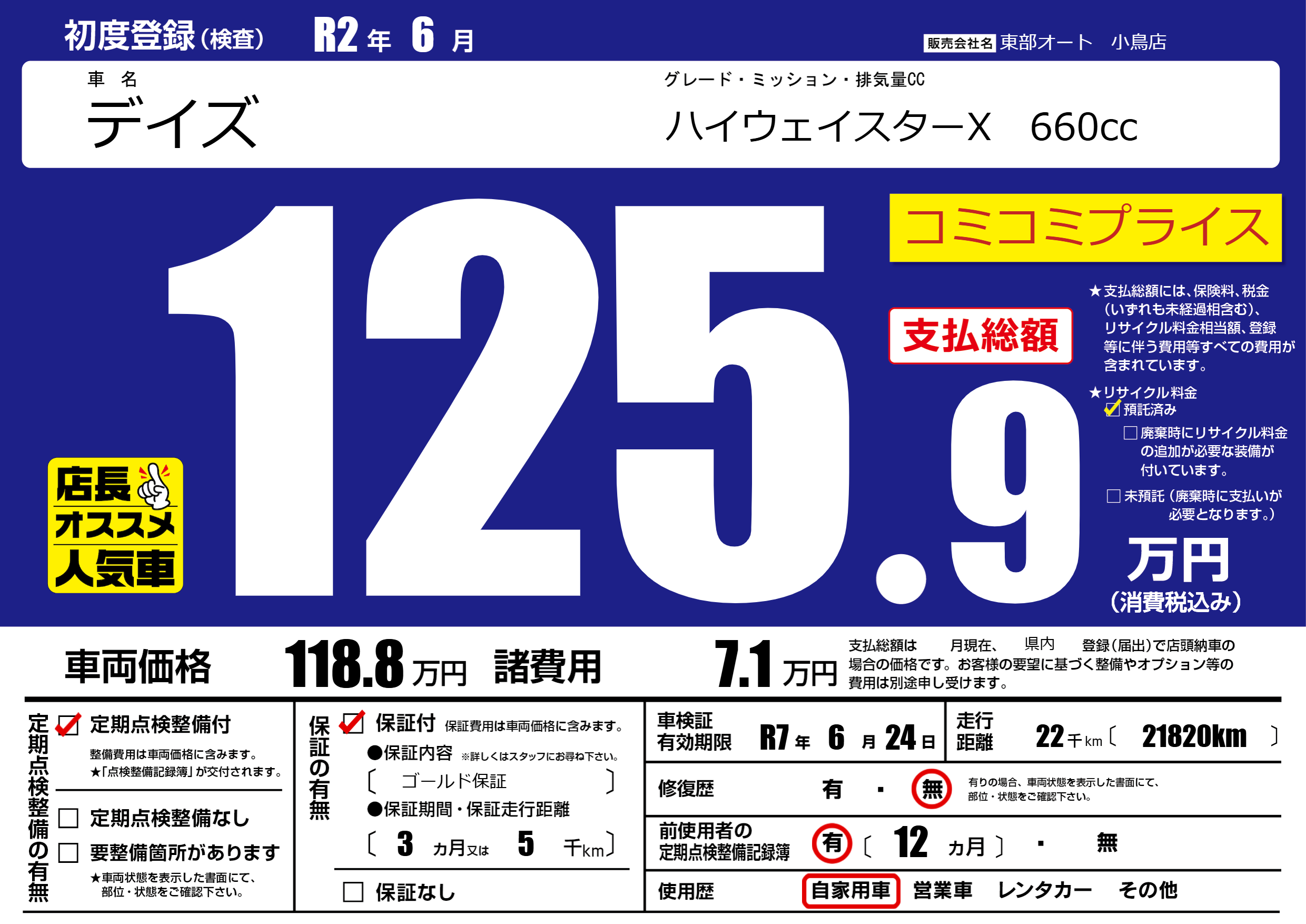 なし | 車検制限 | R7年6月24月 |