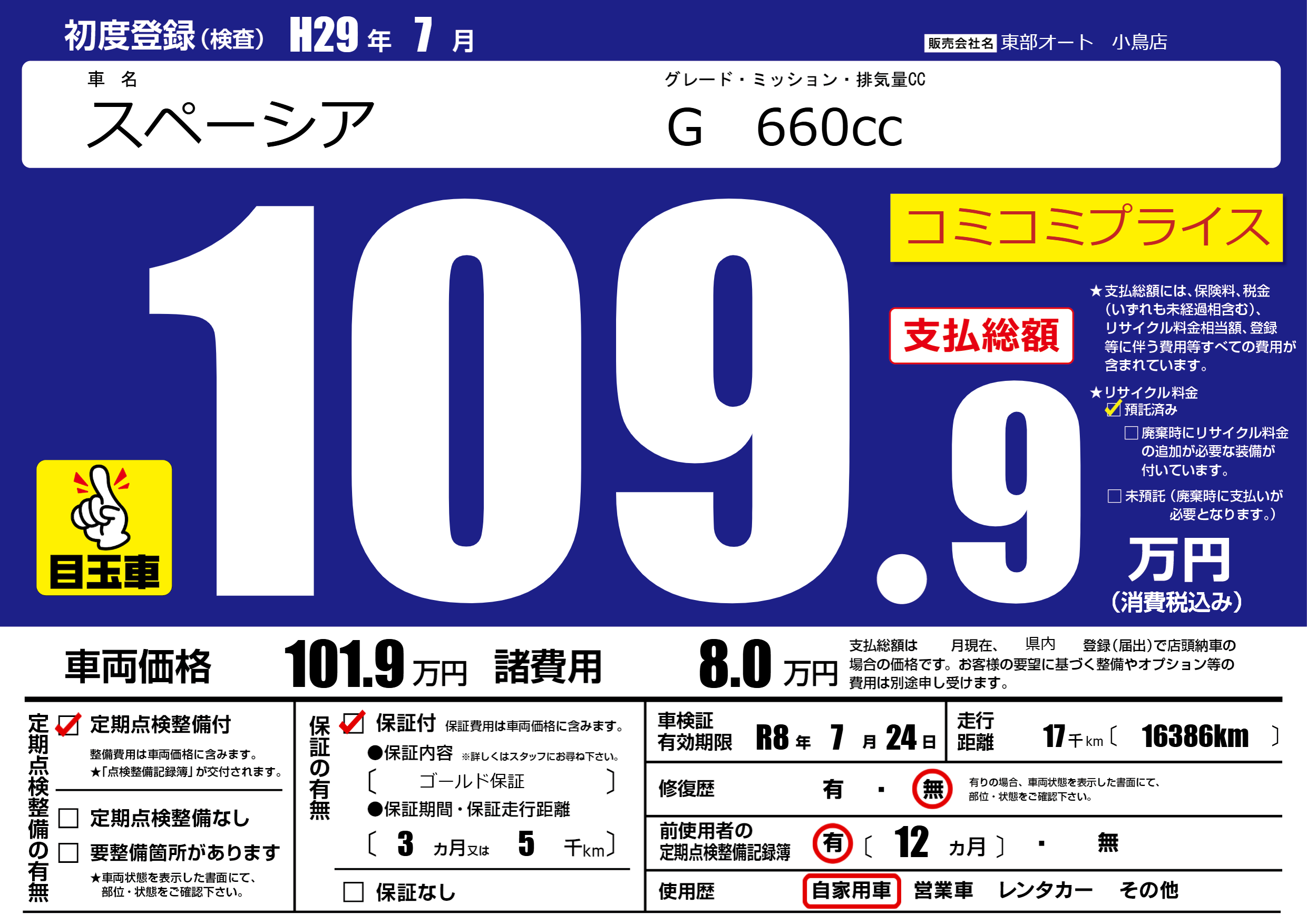 | 初年度登録 | H29年7月 | ||