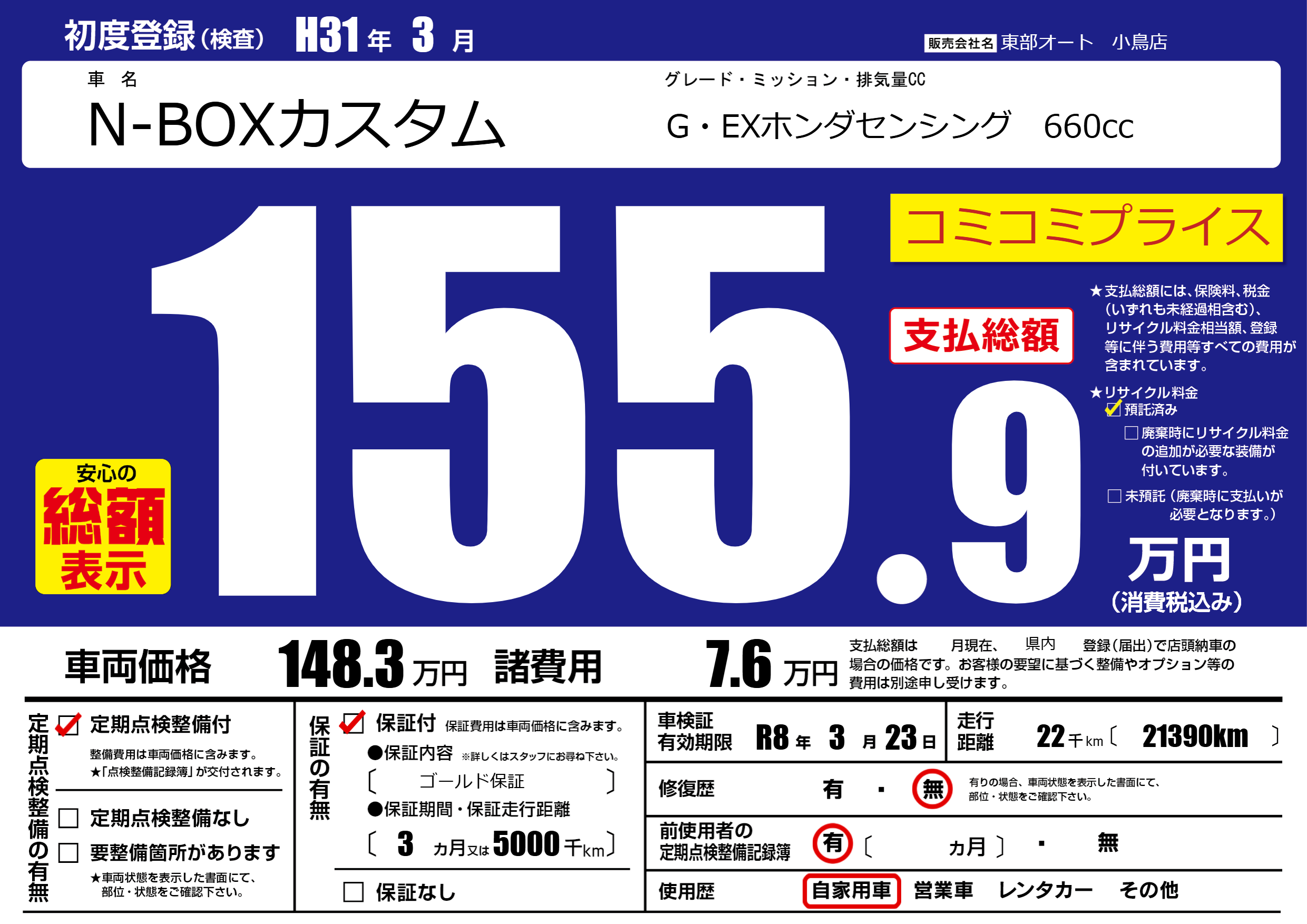 保証付き 保証内容( ゴールド保証) 3ヶ月または(5000)千kmまで |