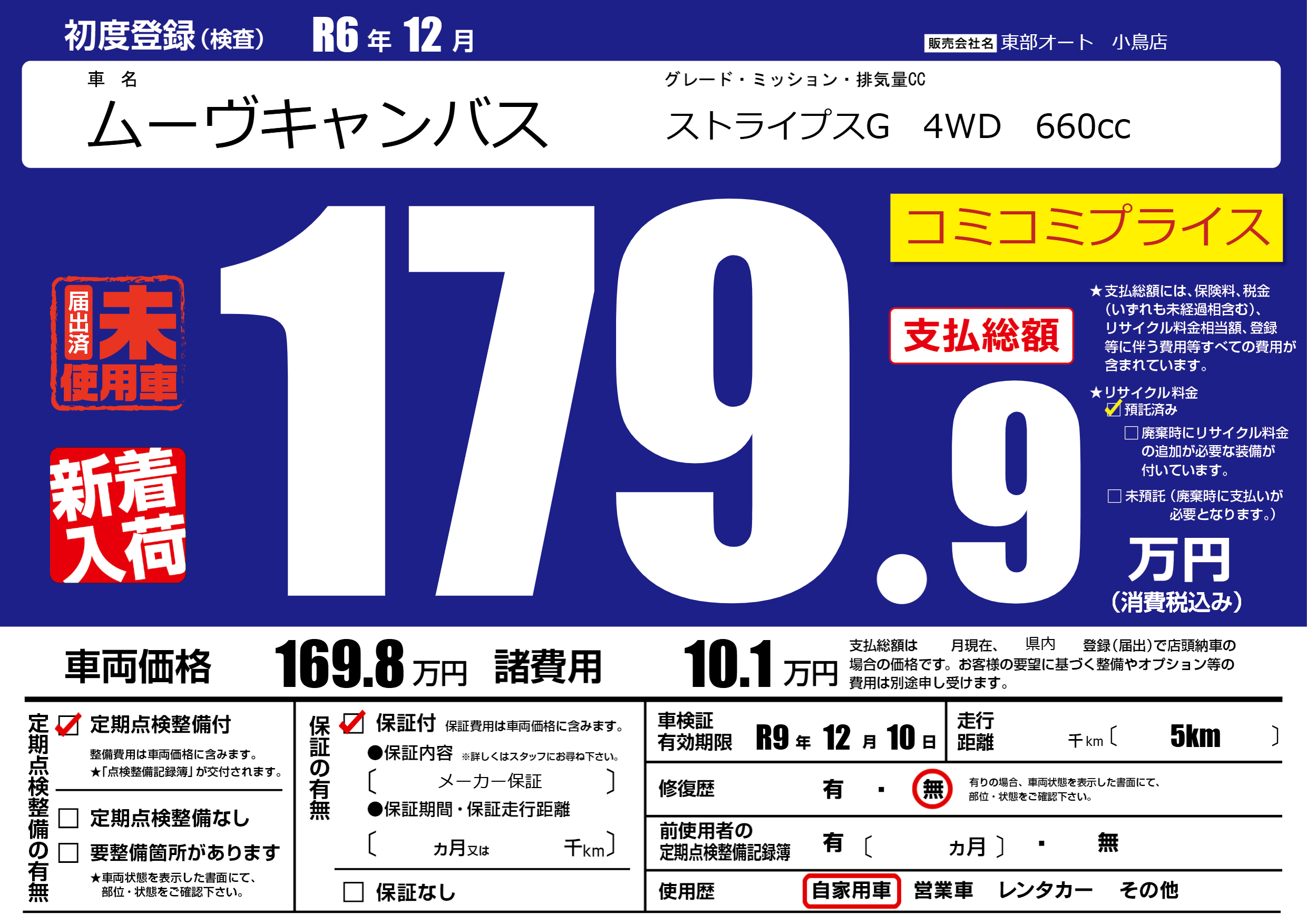 | 走行キロ | - | 初年度登録 | R6年12月 |