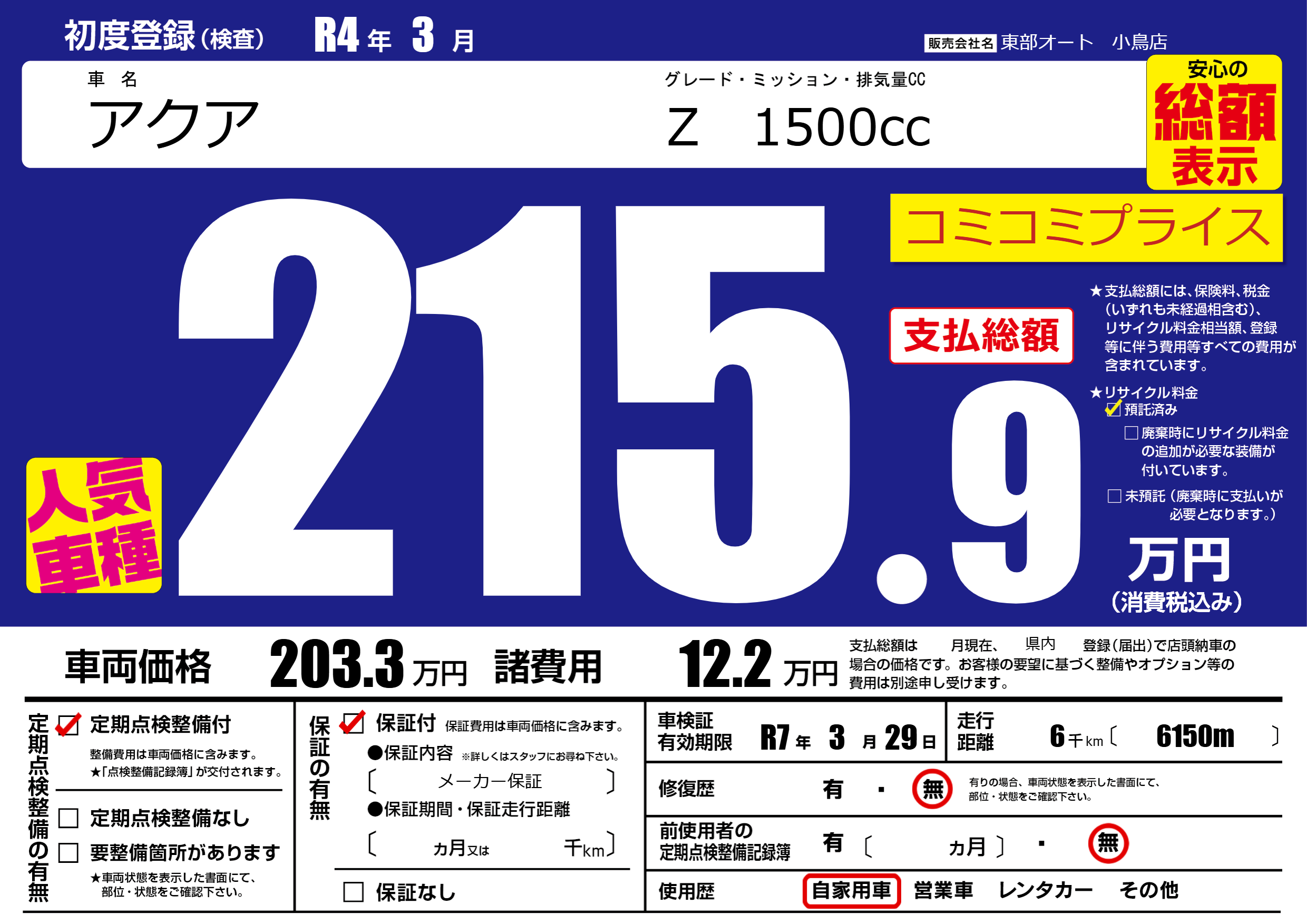 保証付き 保証内容( メーカー保証) ---ヶ月または()千kmまで |