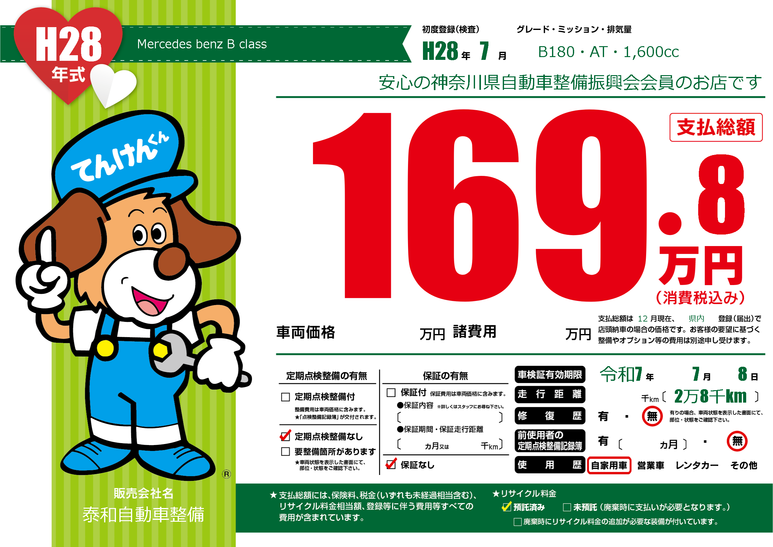 | 車名 | Mercedes benz B class | グレード ミッション 排気量 |