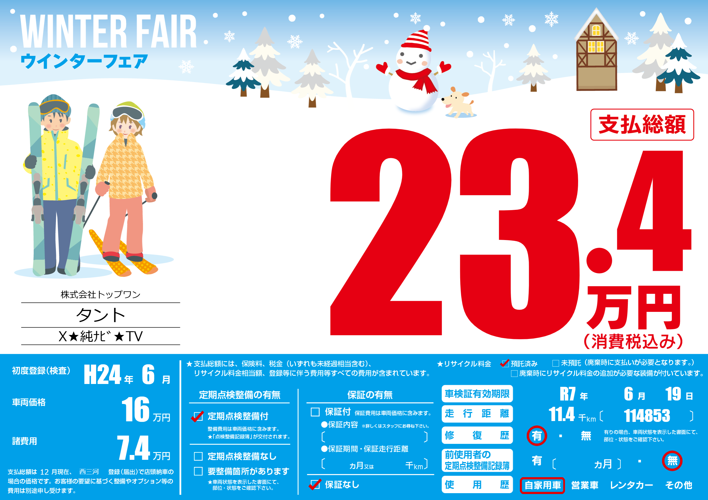 | 走行キロ | 1.1万km | 初年度登録 | H24年6月 |