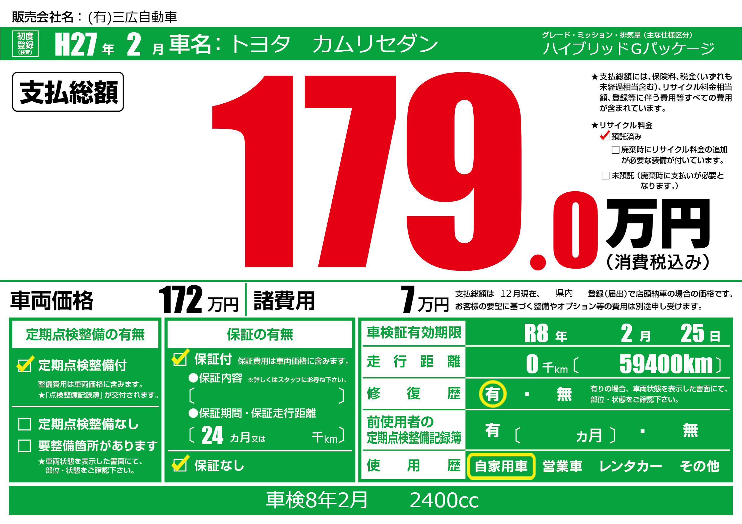 なし | 車検制限 | R8年2月25月 |