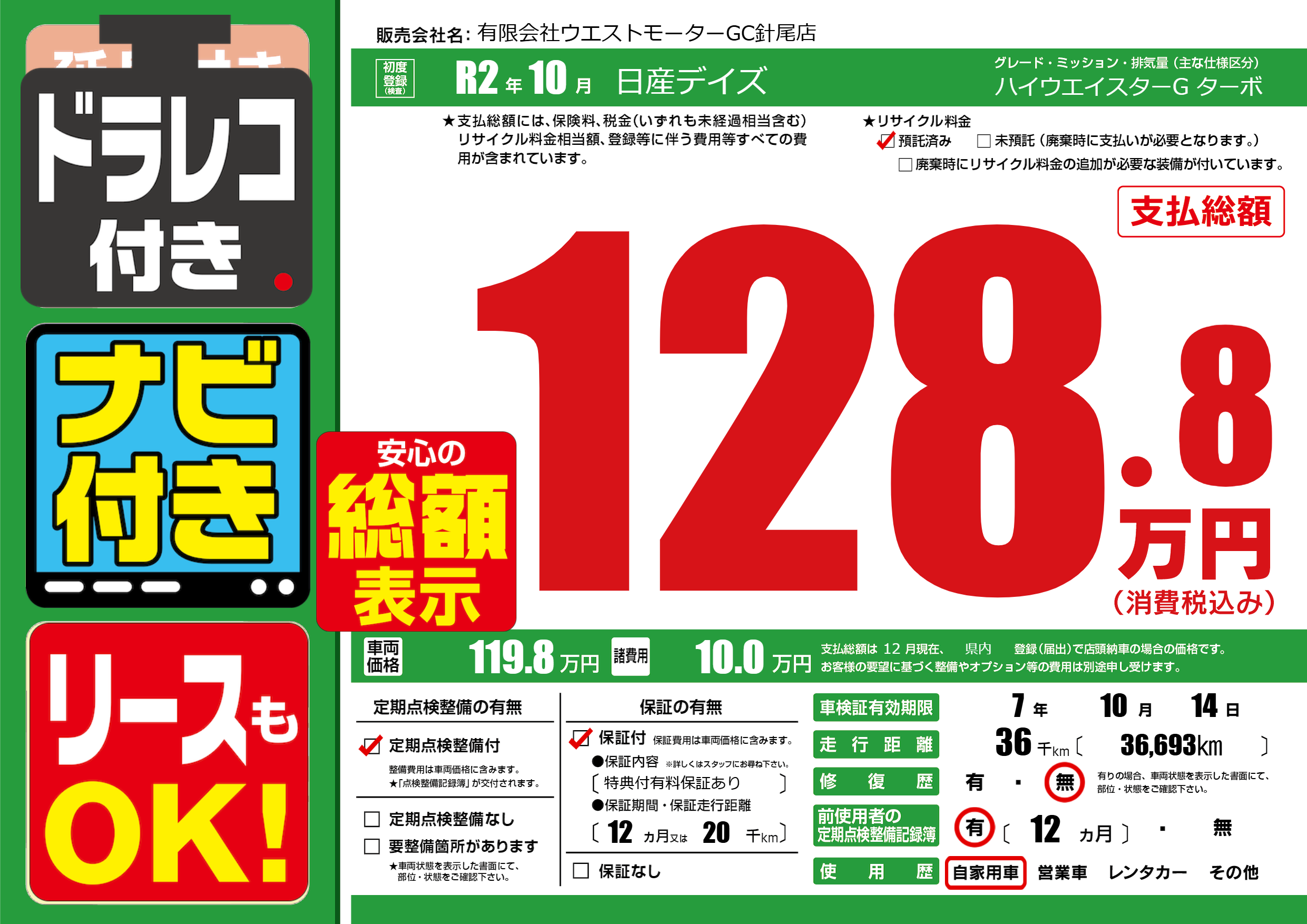 | 走行キロ | 3.6万km | ||