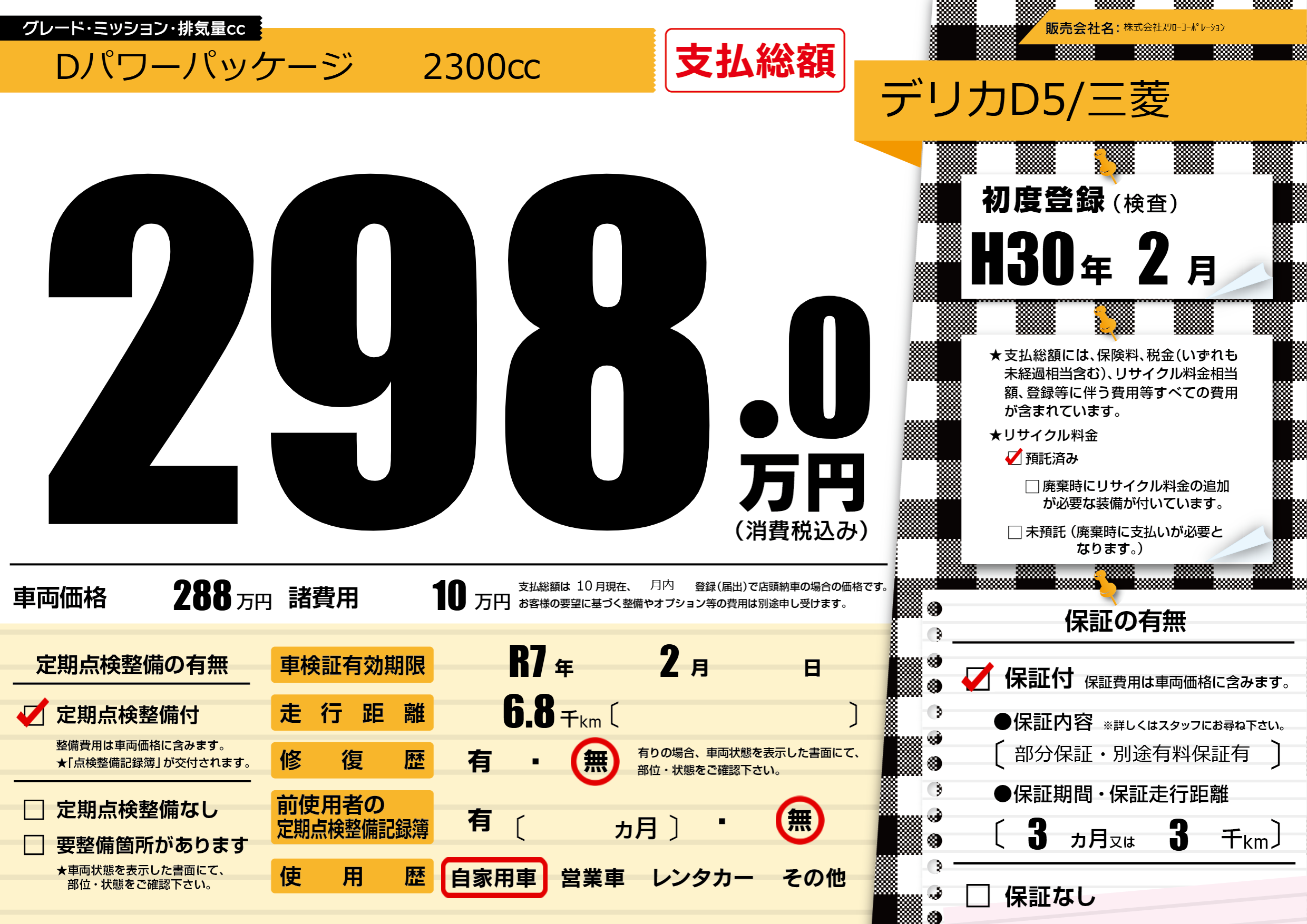 保証付き 保証内容(部分保証・別途有料保証有) 3ヶ月または(3)千kmまで |