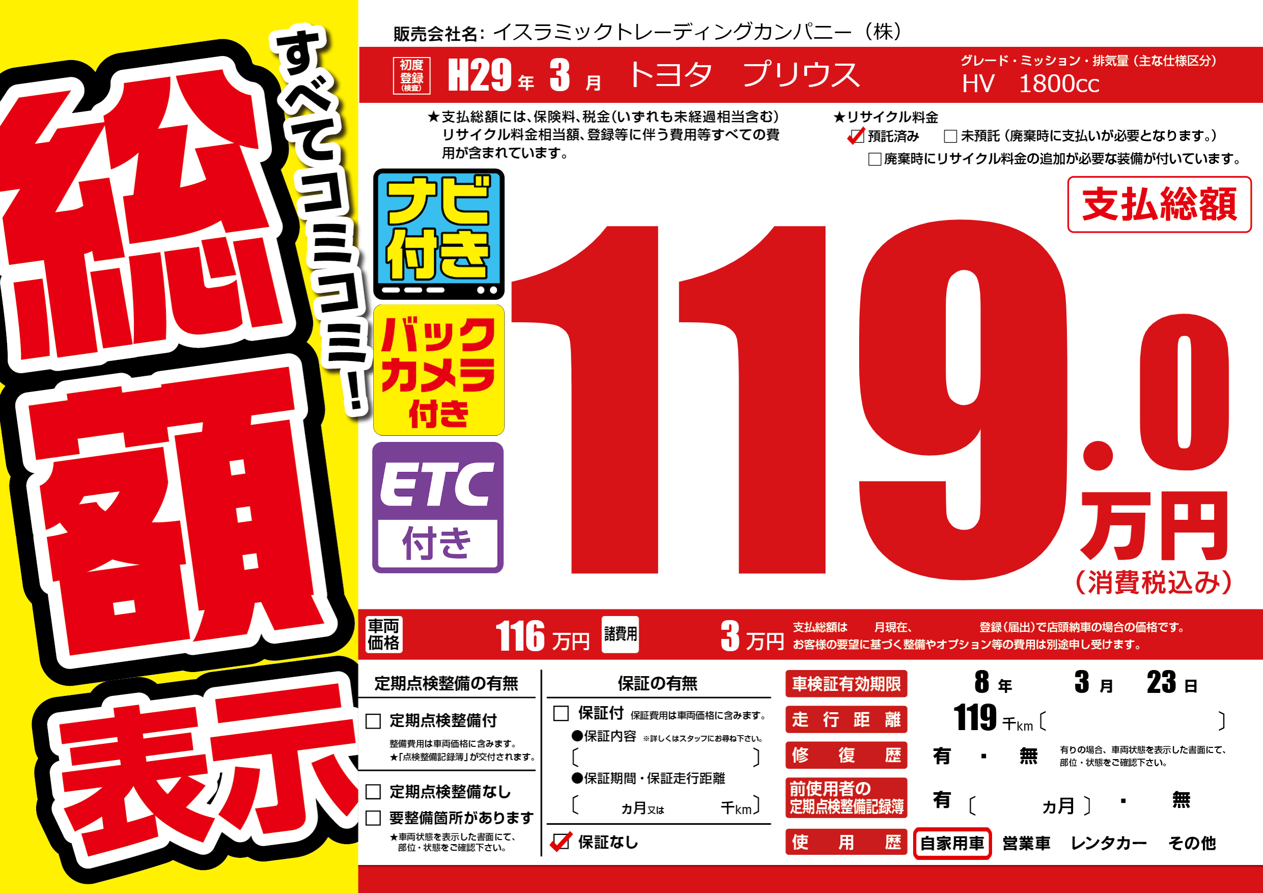 なし | 車検制限 | 8年3月23月 |