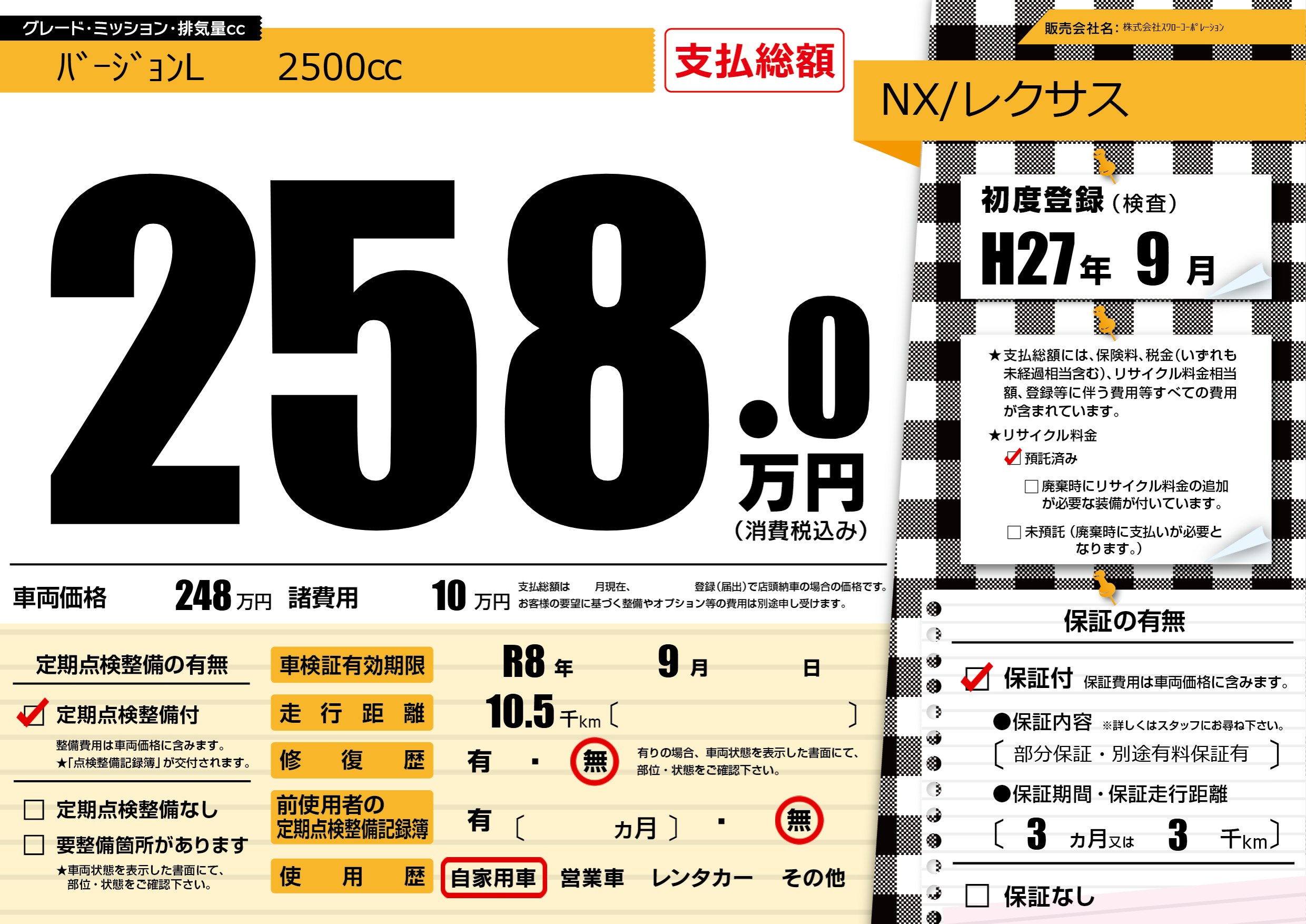 なし | 車検制限 | R8年9月---月 |