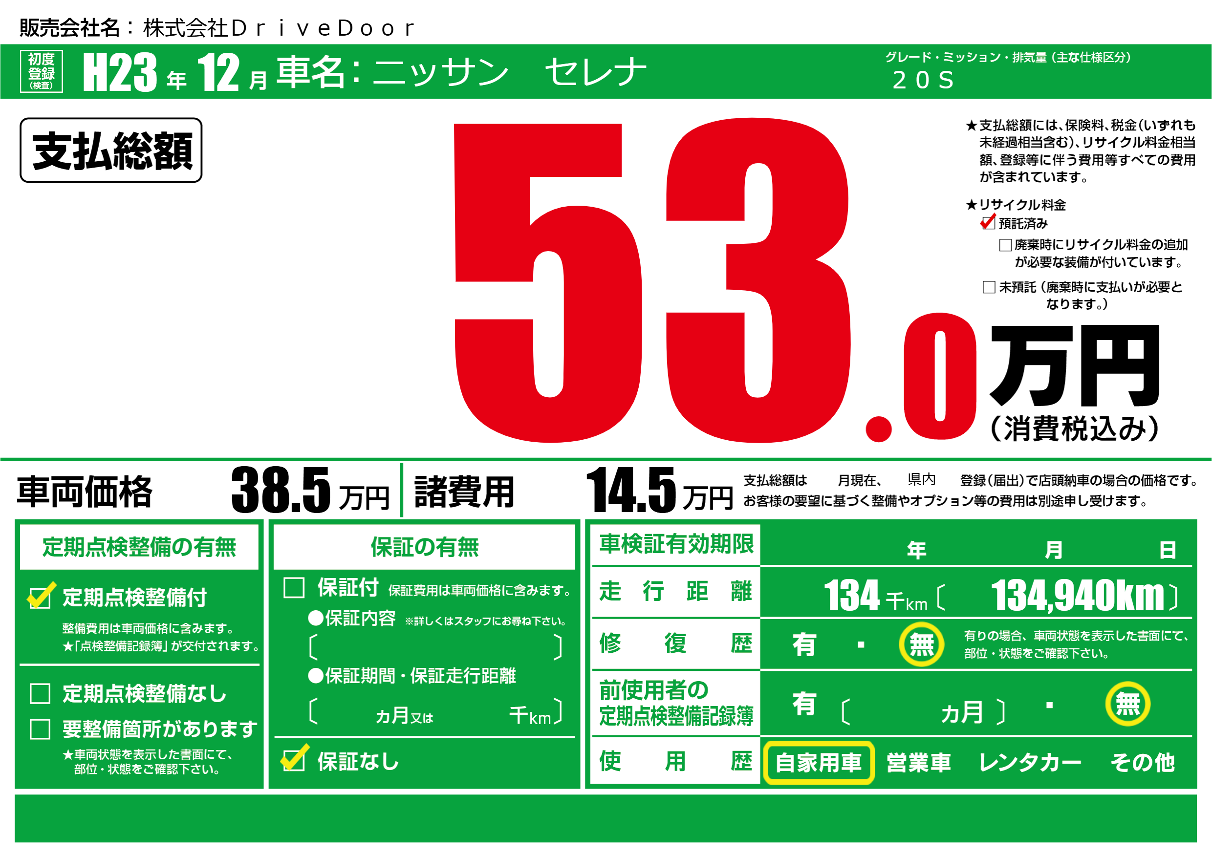 | 車検制限 | - 年 - 月 - 日 | ||