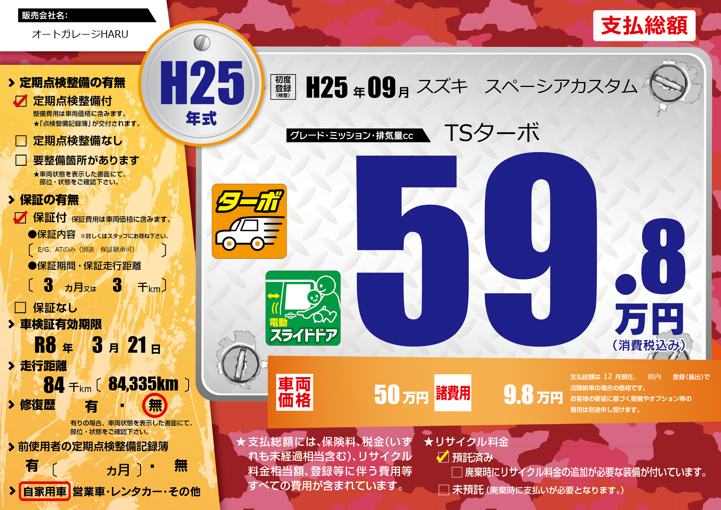 | 車検制限 | R8年 3月 21日 | ||