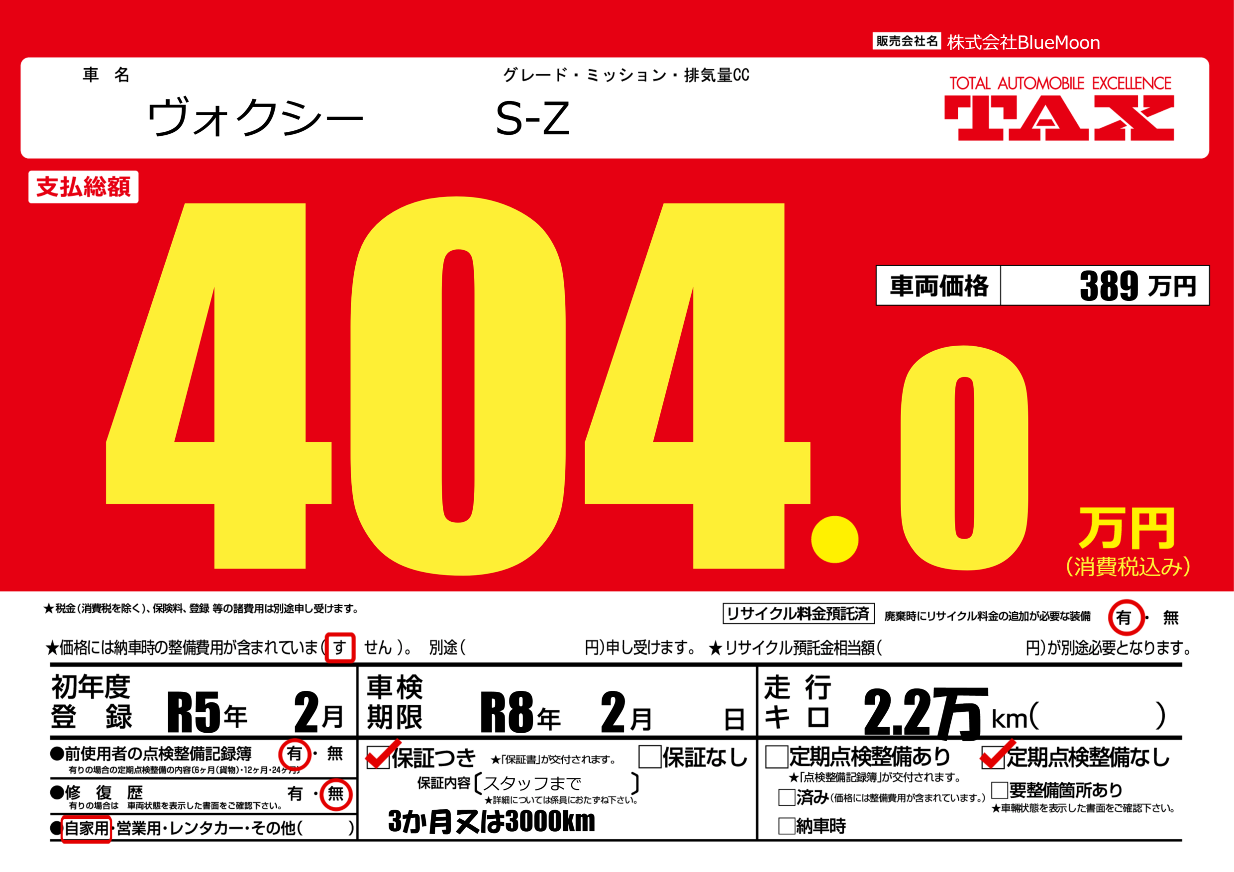 | 走行キロ | 0.2万km | 初年度登録 | R5年2月 |