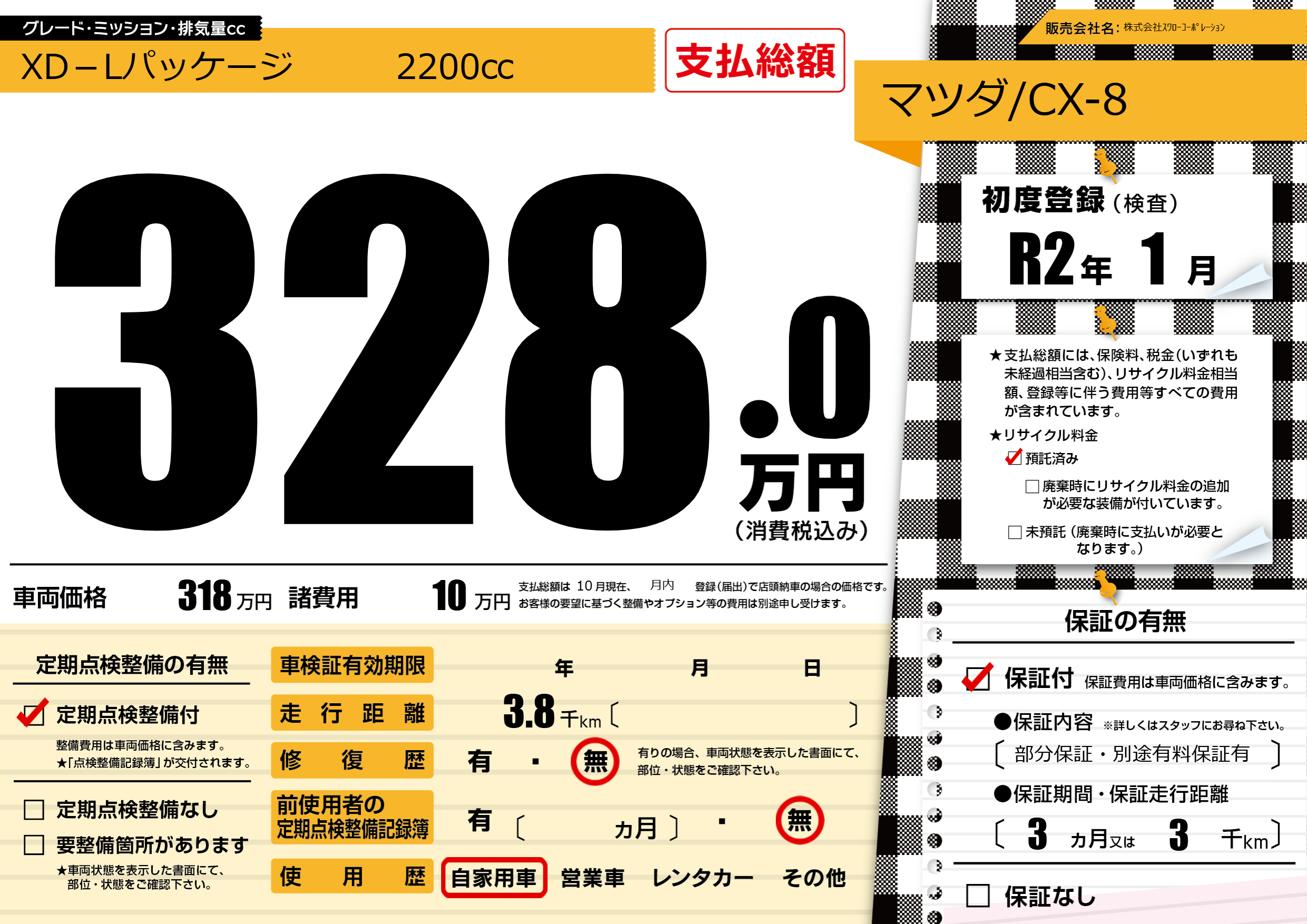 | 車名 | マツダ/CX-8 | グレード ミッション 排気量 |