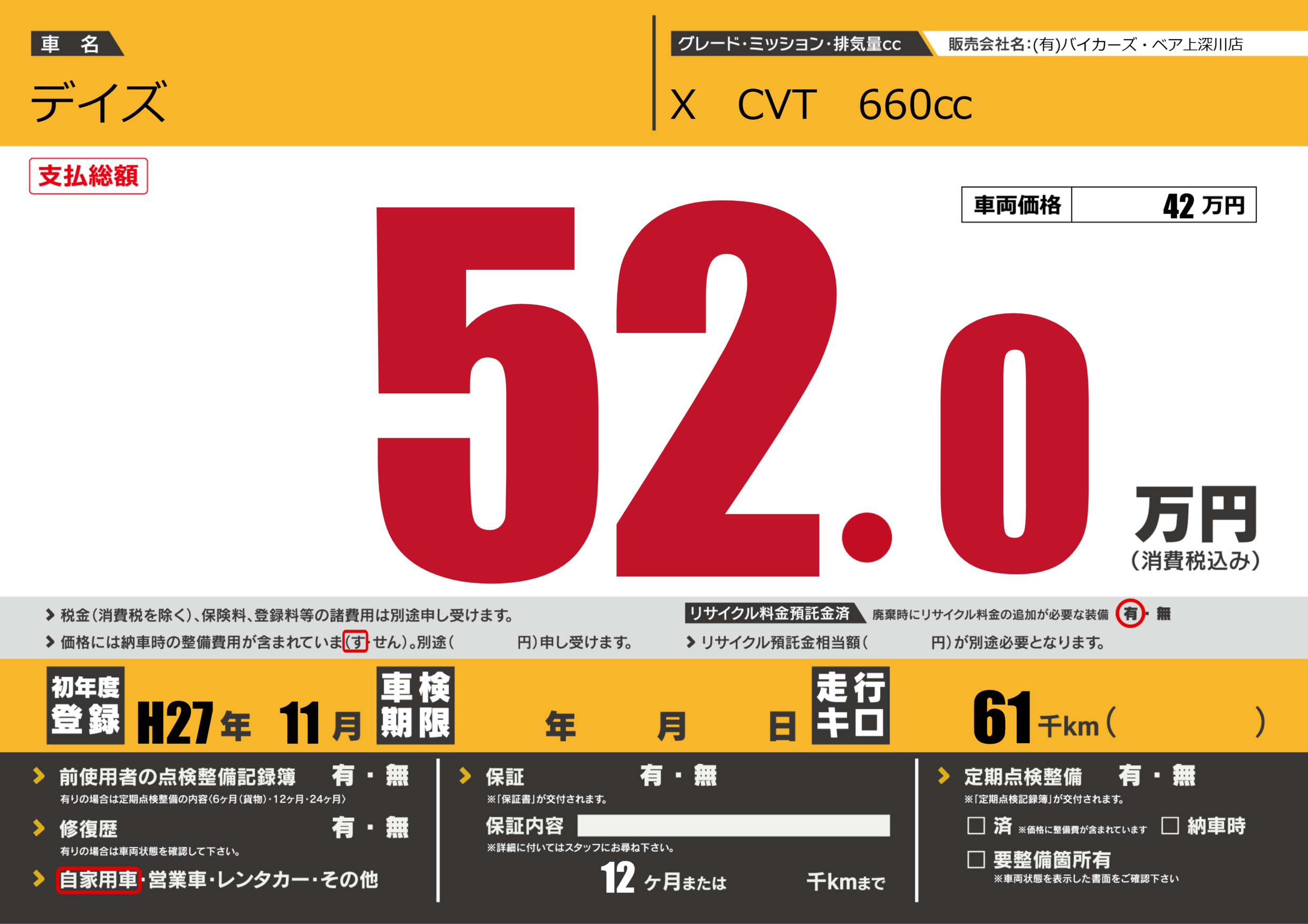 初年度登録 H27年11月