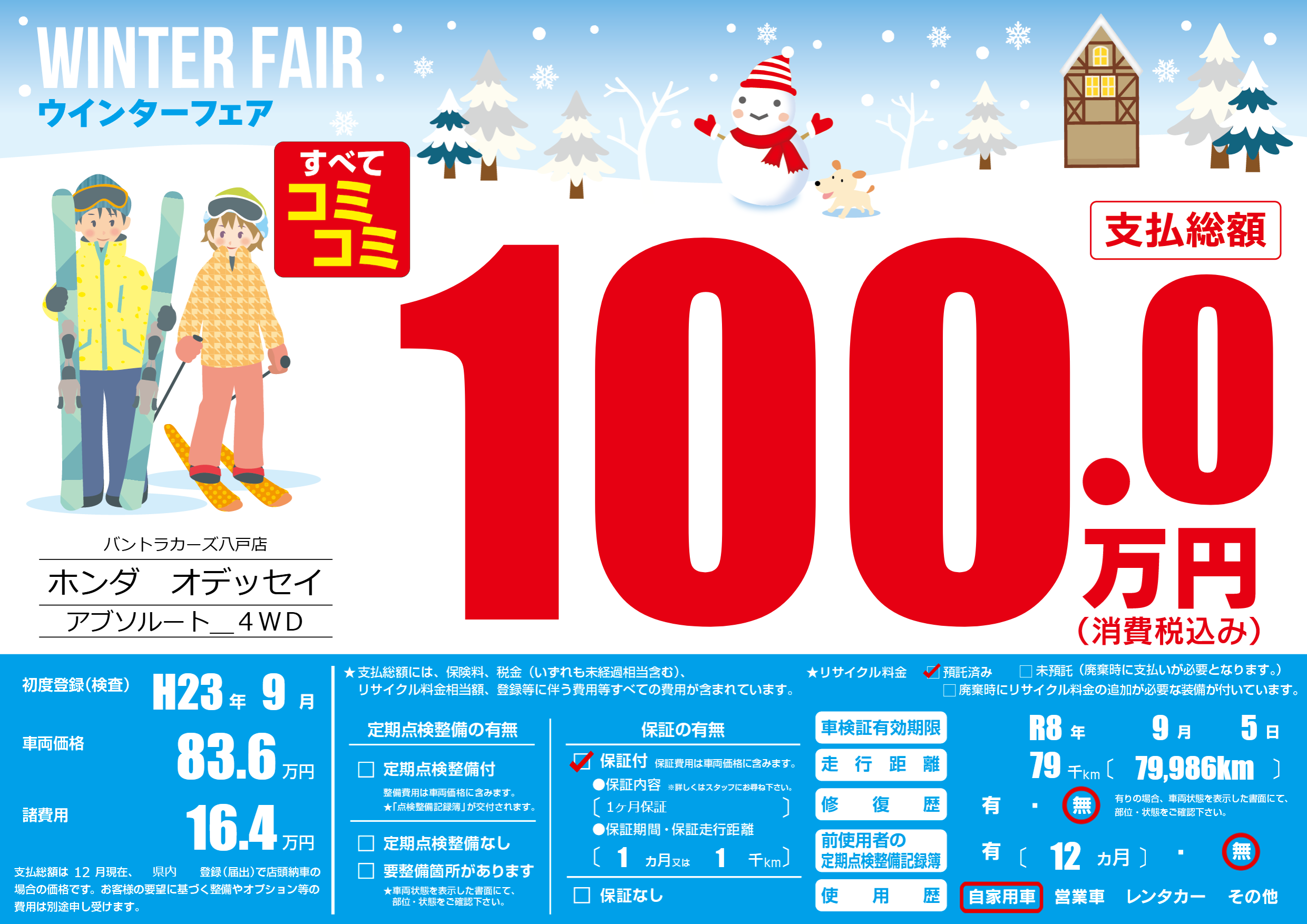 | 走行キロ | 7.9万km | 初年度登録 | H23年9月 |