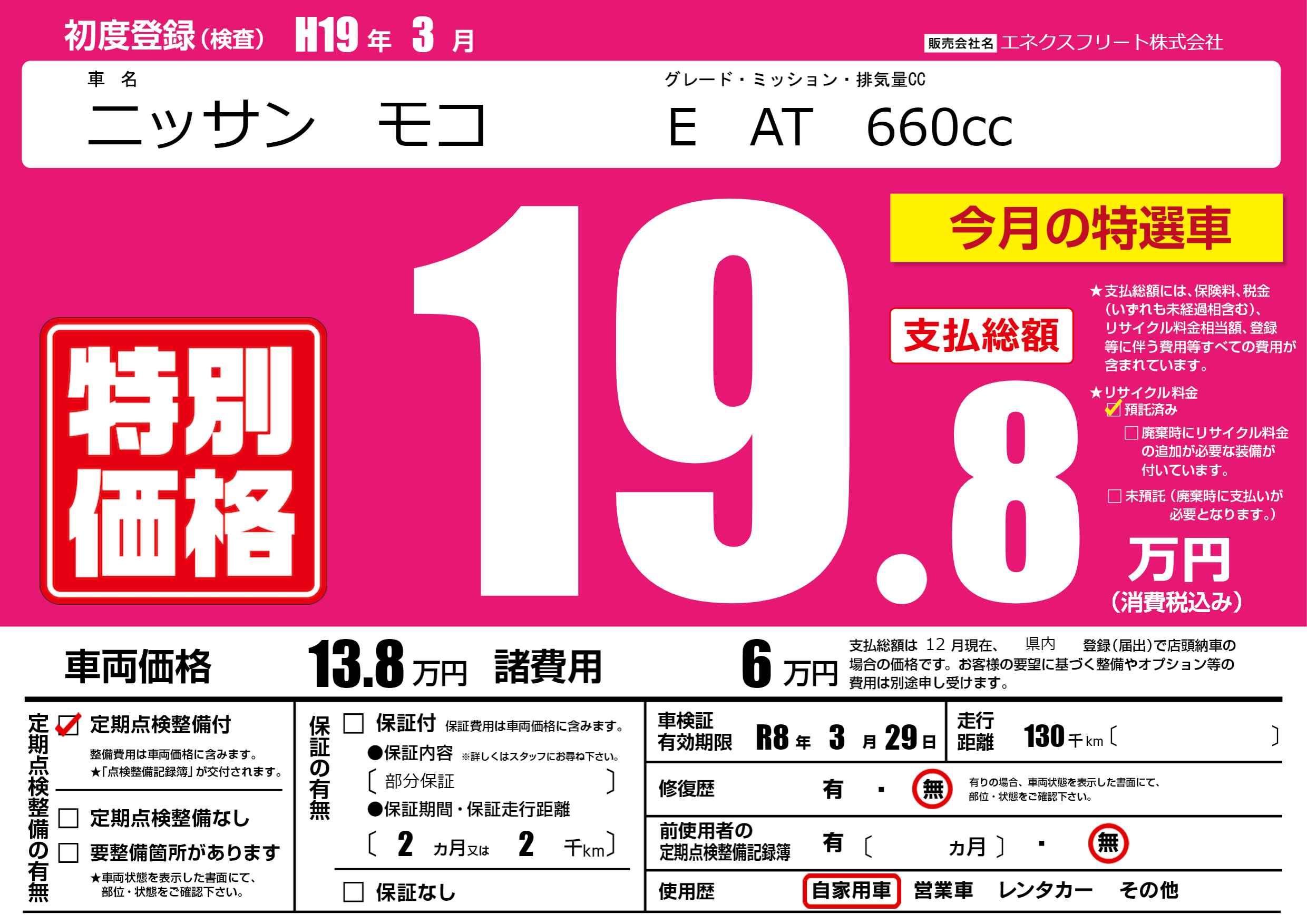 | 初年度登録 | H19年3月 | ||